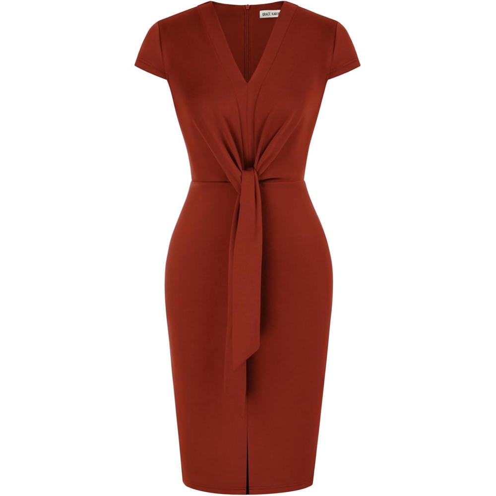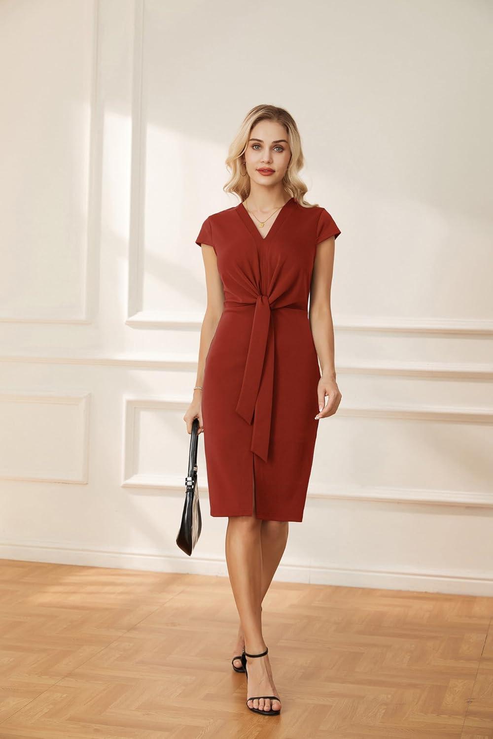 Don’t miss out on our limited-time offer: buy GRACE KARIN Women’s Summer Midi Dresses Cap Sleeve Tie Waist Work Dress Slit V-Neck Bodycon Dress Business Casual Outfits(Brown Red), get {accessory} 50% off!