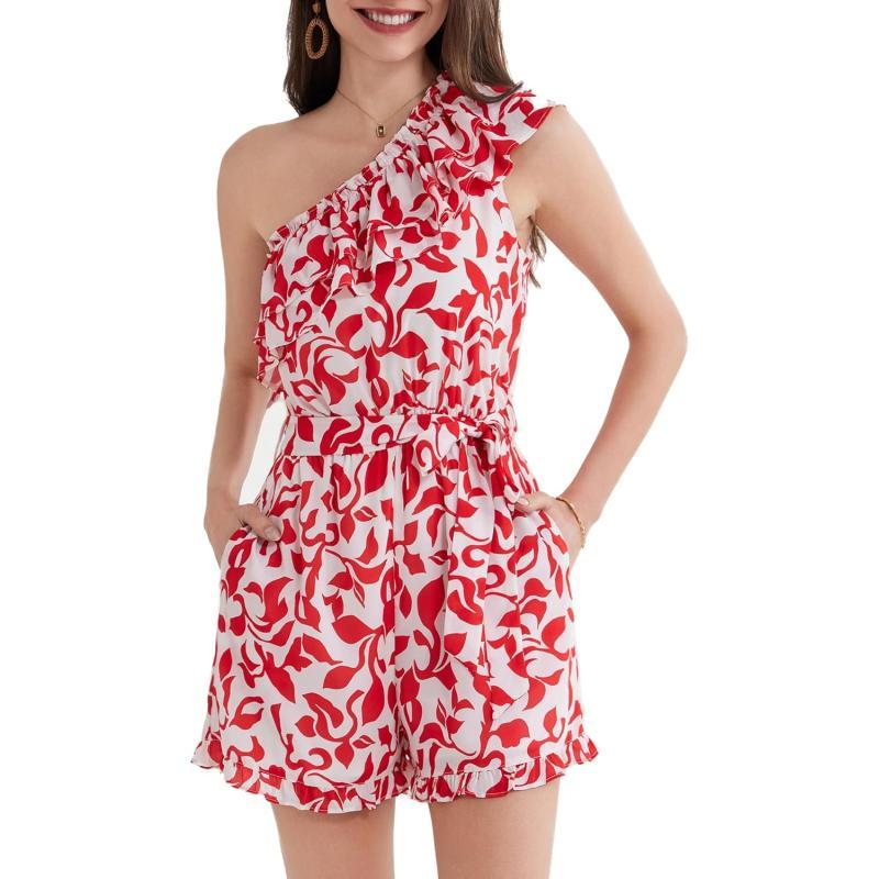 Don’t miss out on our limited-time offer: buy GRACE KARIN Women’s Summer One Shoulder Boho Floral Print Shorts Rompers Tie Waist Beach Ruffle Short Jumpsuits with Pockets(Red Floral), get {accessory} 50% off!