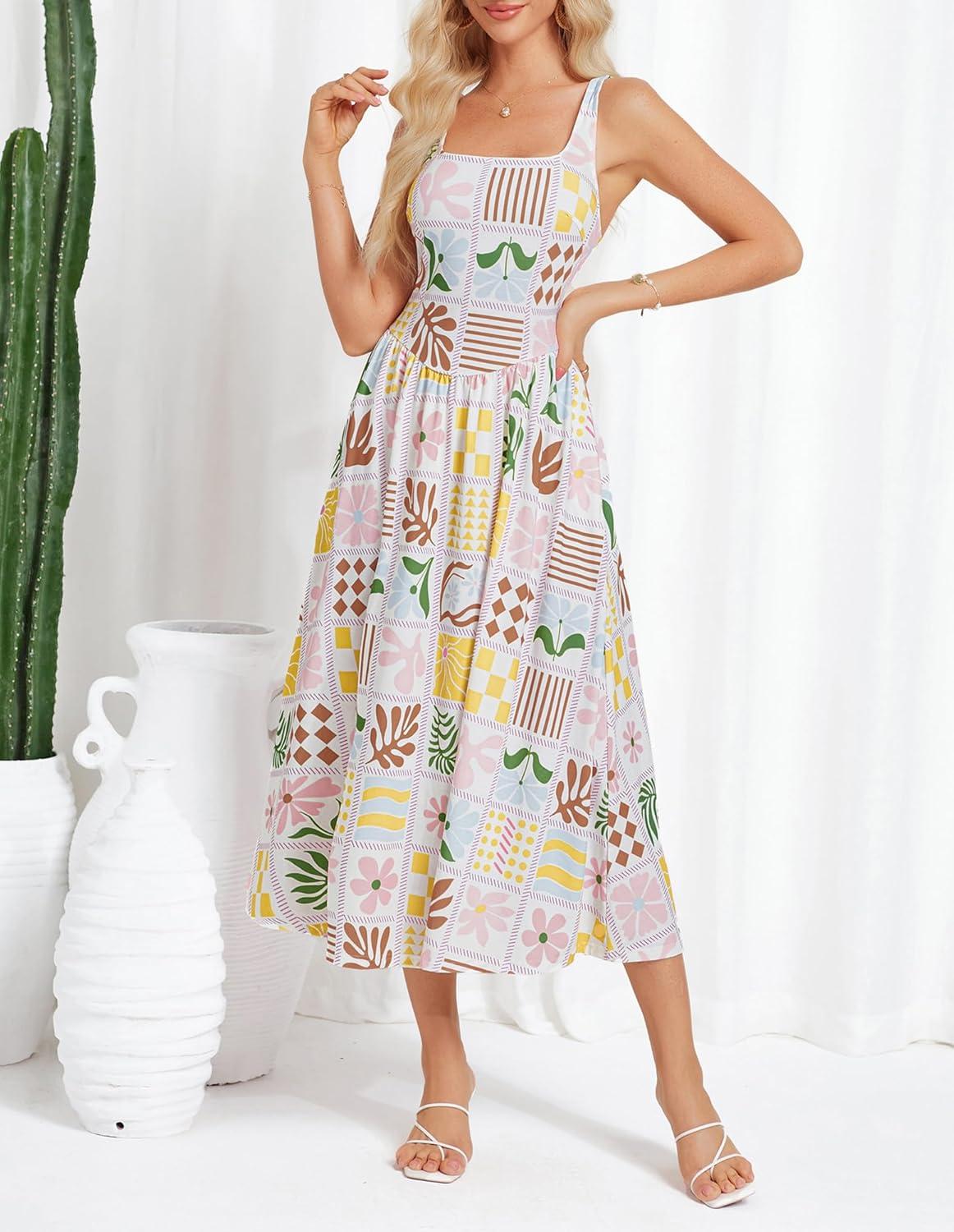 Be the first to review “GRACE KARIN Women’s Summer Square Neck Sleeveless Floral Midi Dress 2025 Boho Beach Casual Dresses with Pockets(Checkered Painting)” Cancel reply