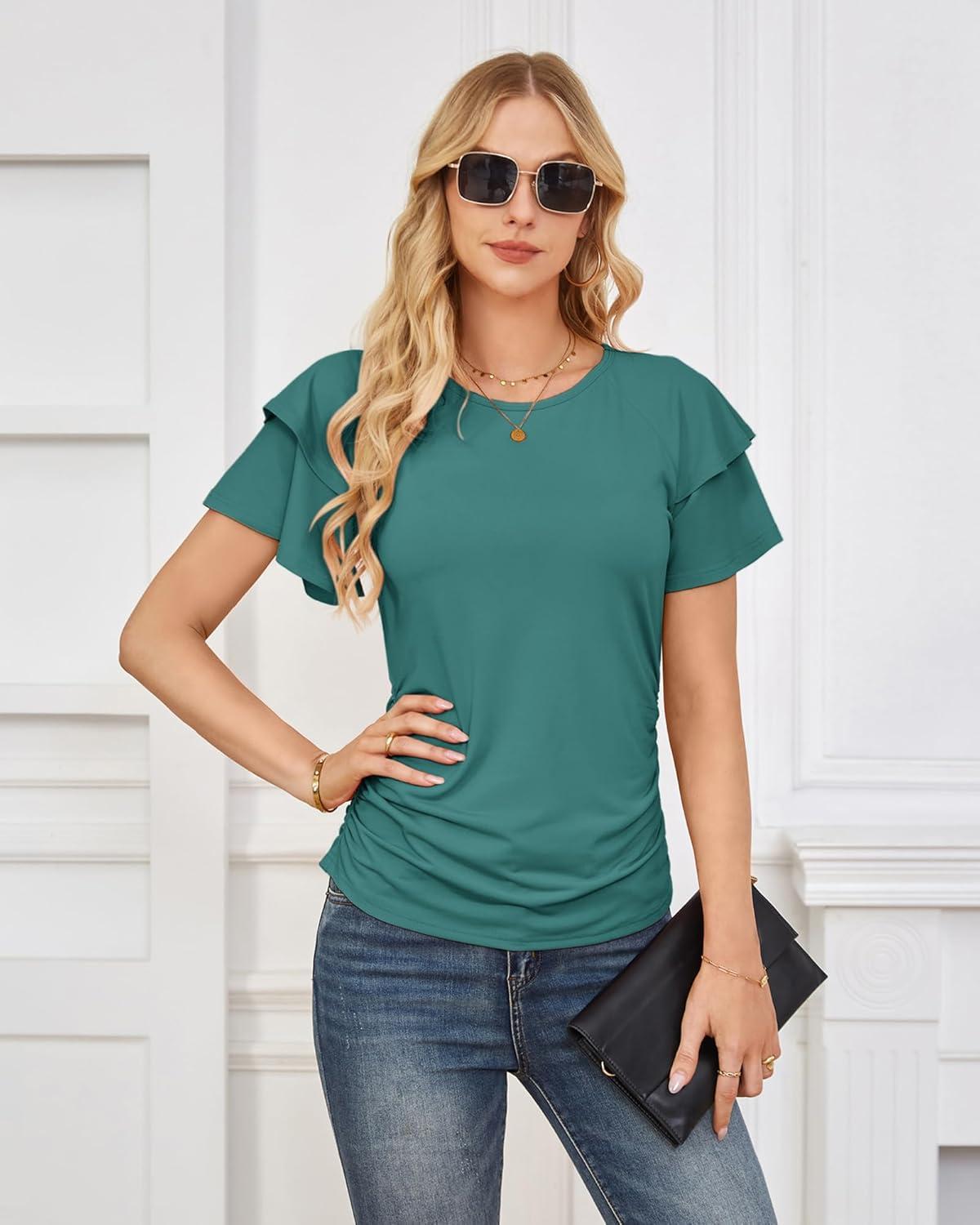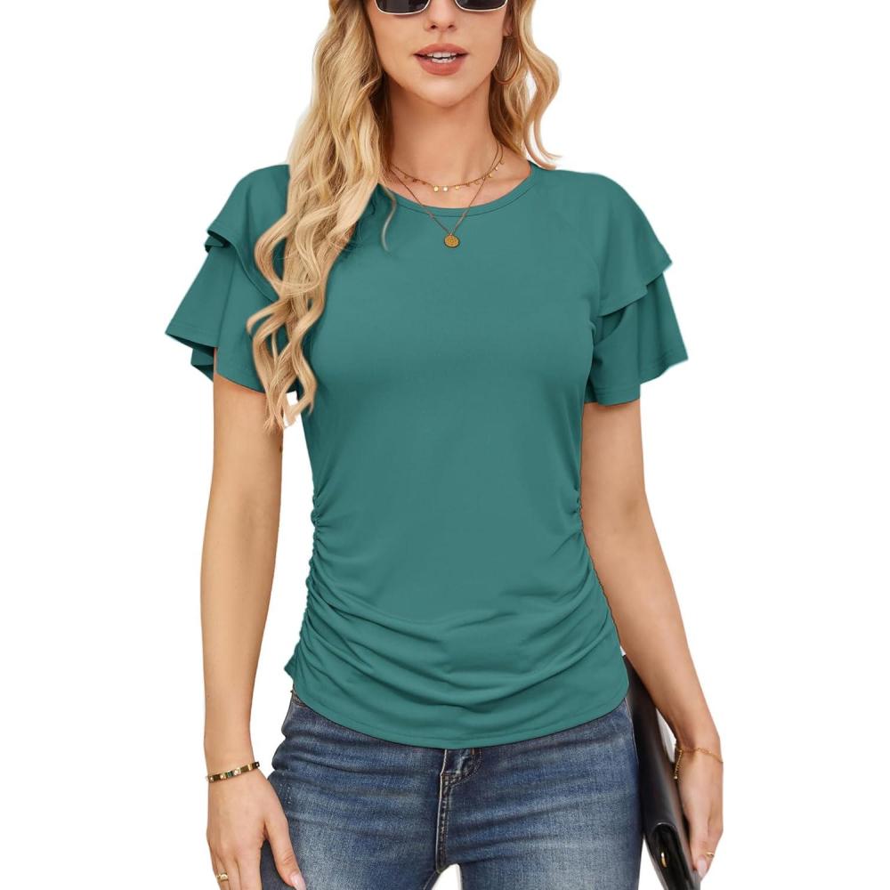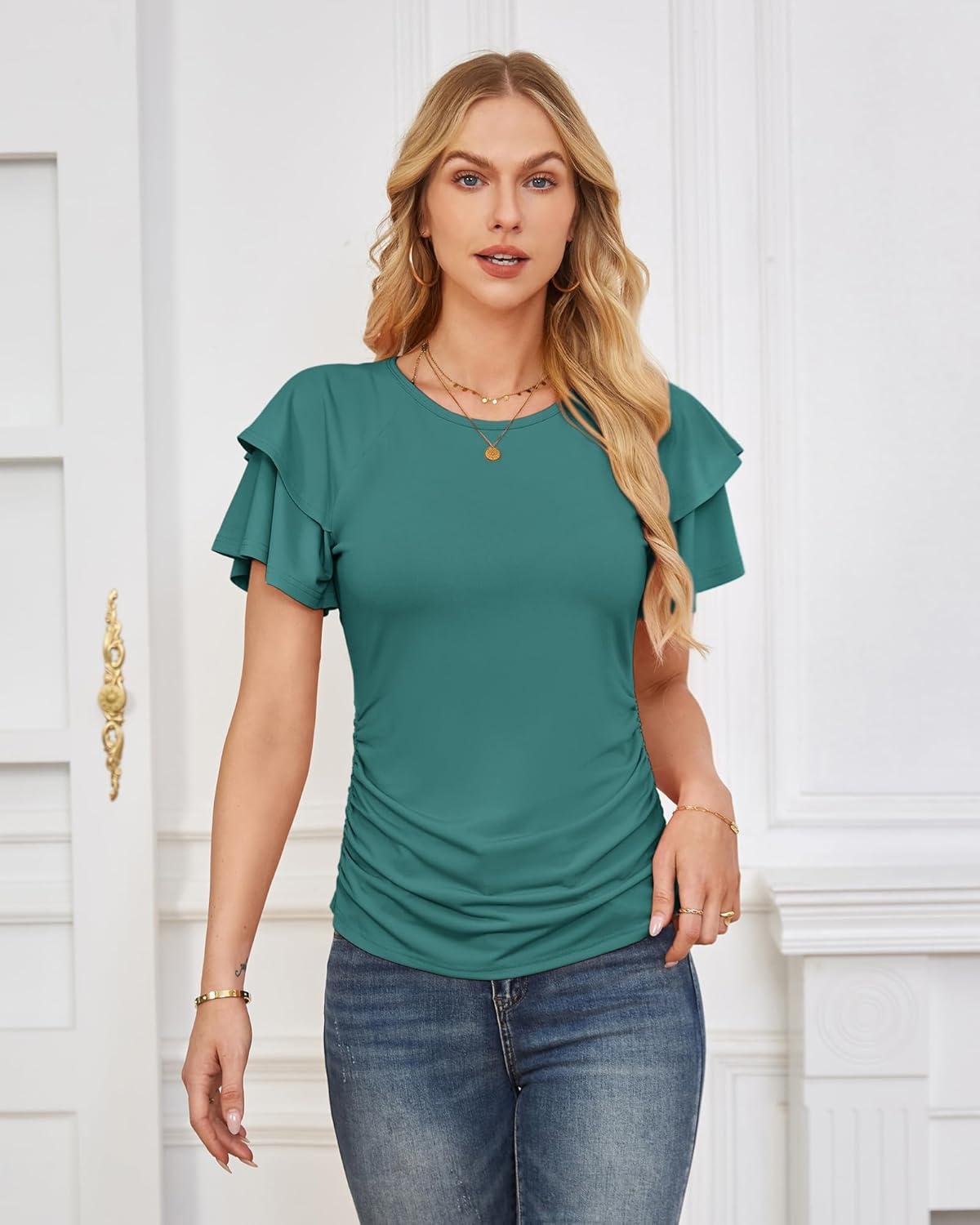 Be the first to review “GRACE KARIN Women’s Summer Tops Ruffle Sleeve Basic T Shirts Dressy Casual Ruched Work Blouses Trendy Clothes 2025(Blue Green)” Cancel reply