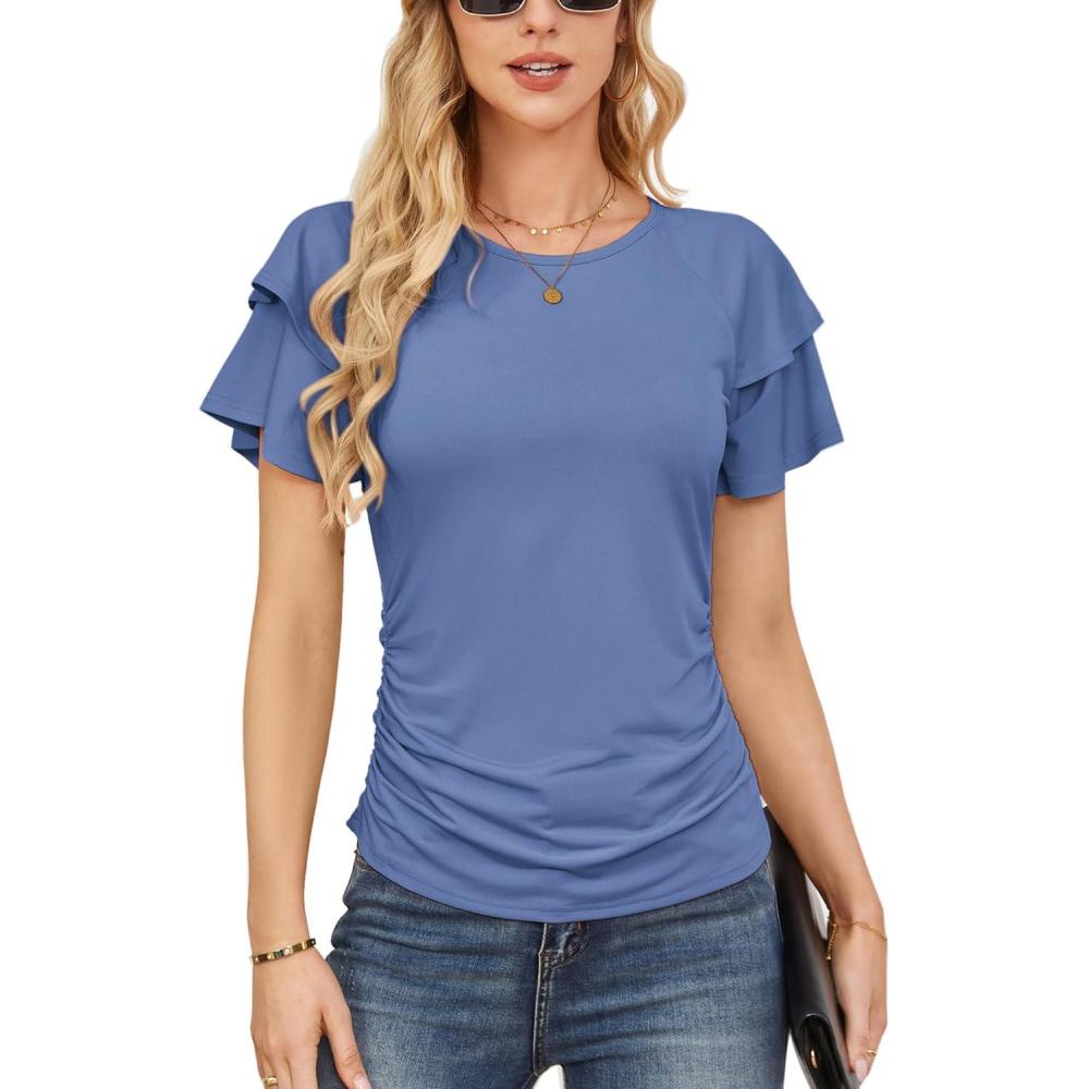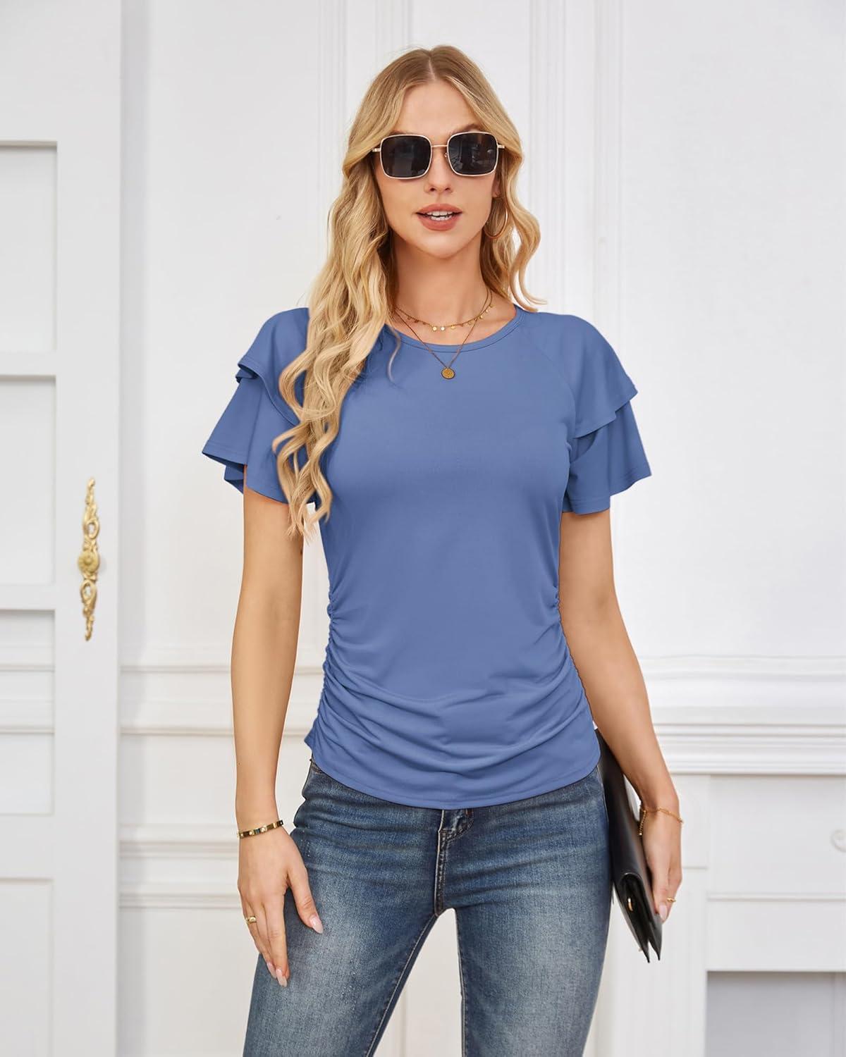 Be the first to review “GRACE KARIN Women’s Summer Tops Ruffle Sleeve Basic T Shirts Dressy Casual Ruched Work Blouses Trendy Clothes 2025(Blue)” Cancel reply
