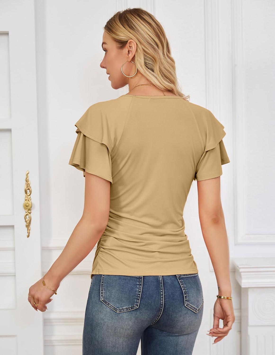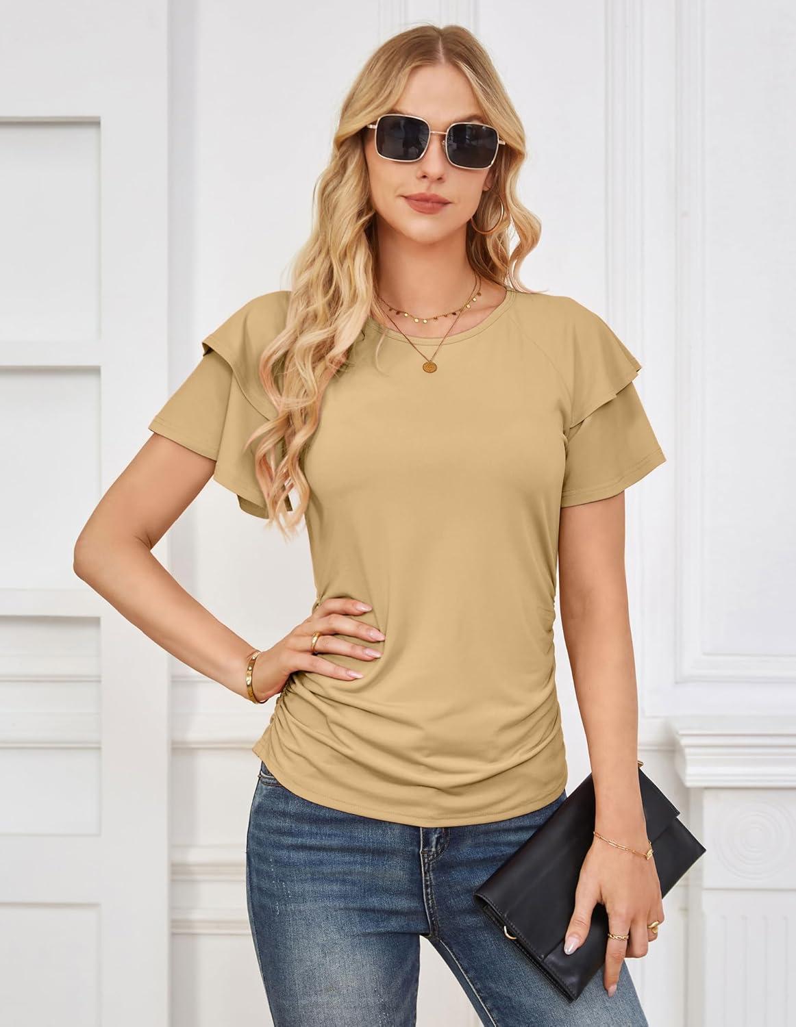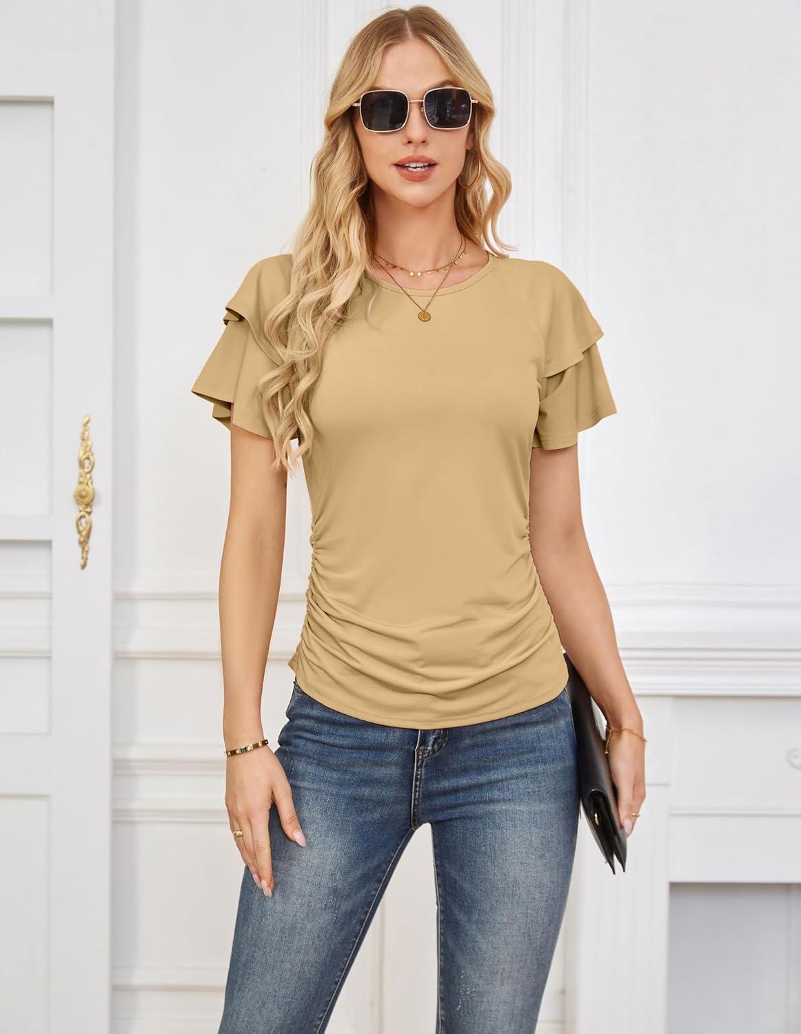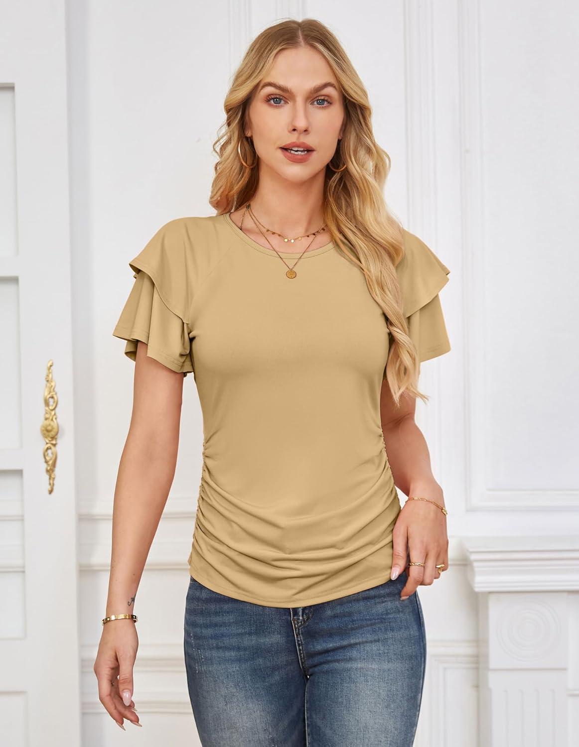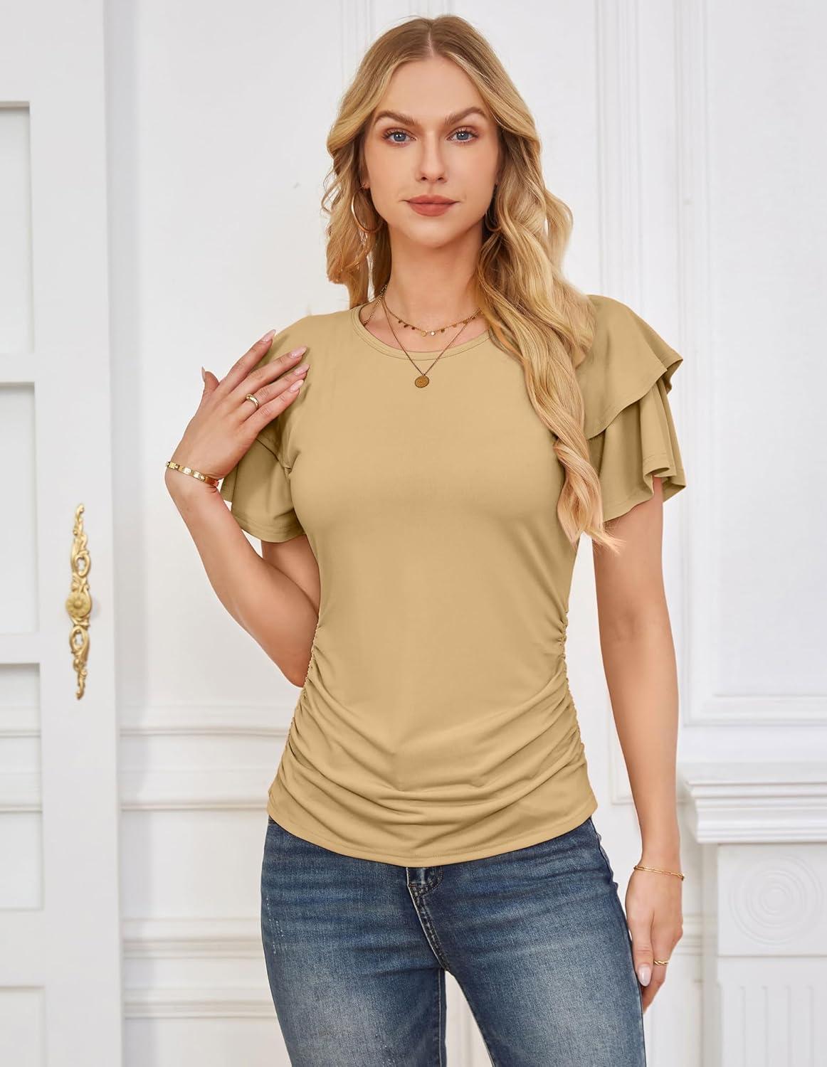 Be the first to review “GRACE KARIN Women’s Summer Tops Ruffle Sleeve Basic T Shirts Dressy Casual Ruched Work Blouses Trendy Clothes 2025(Yellow)” Cancel reply