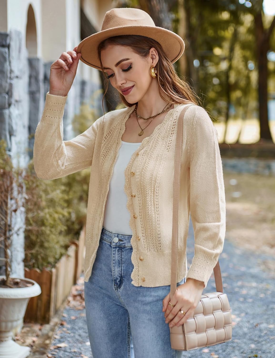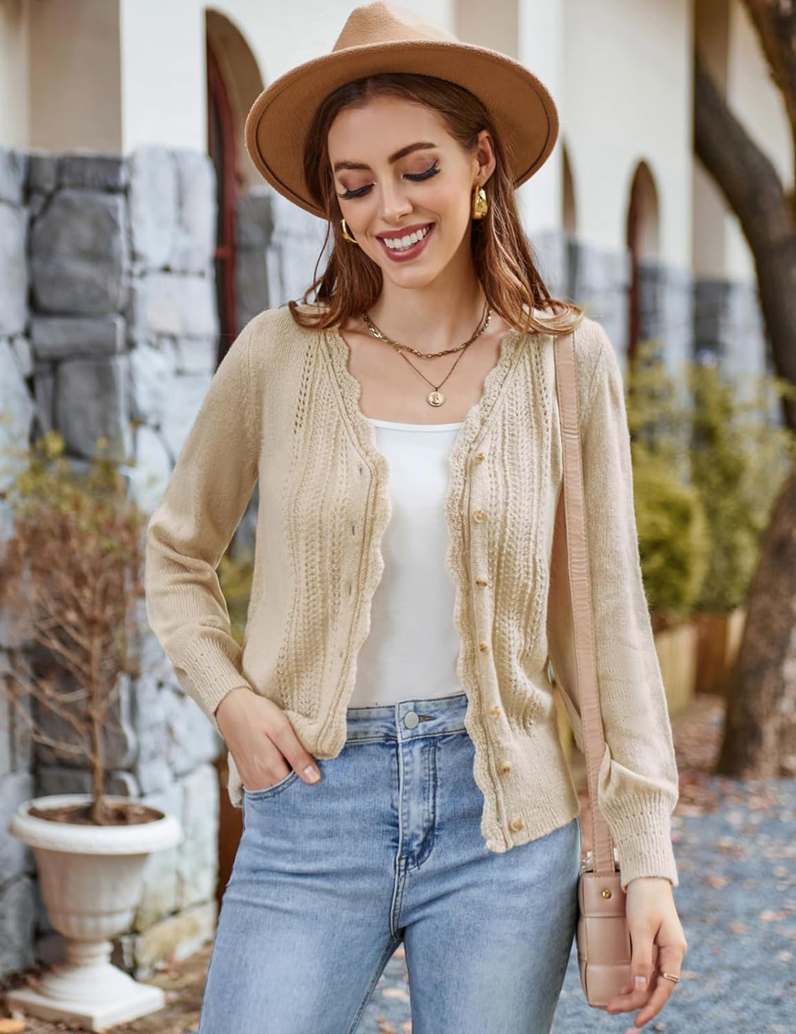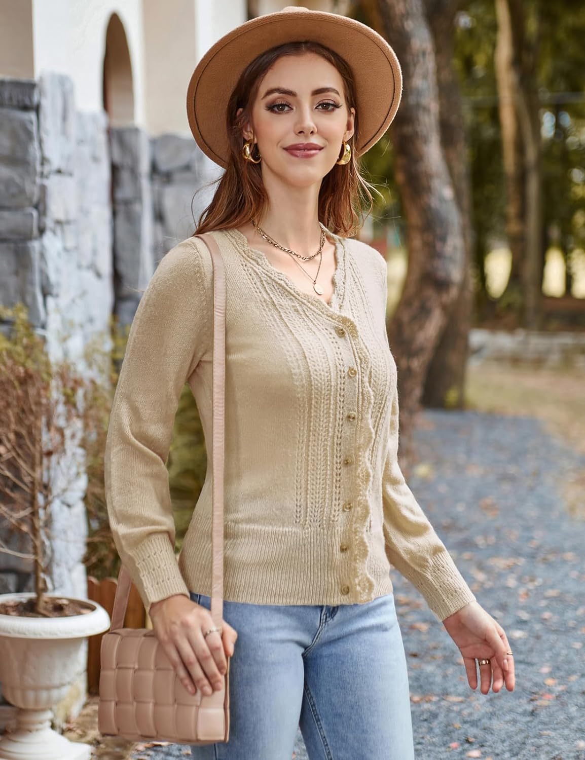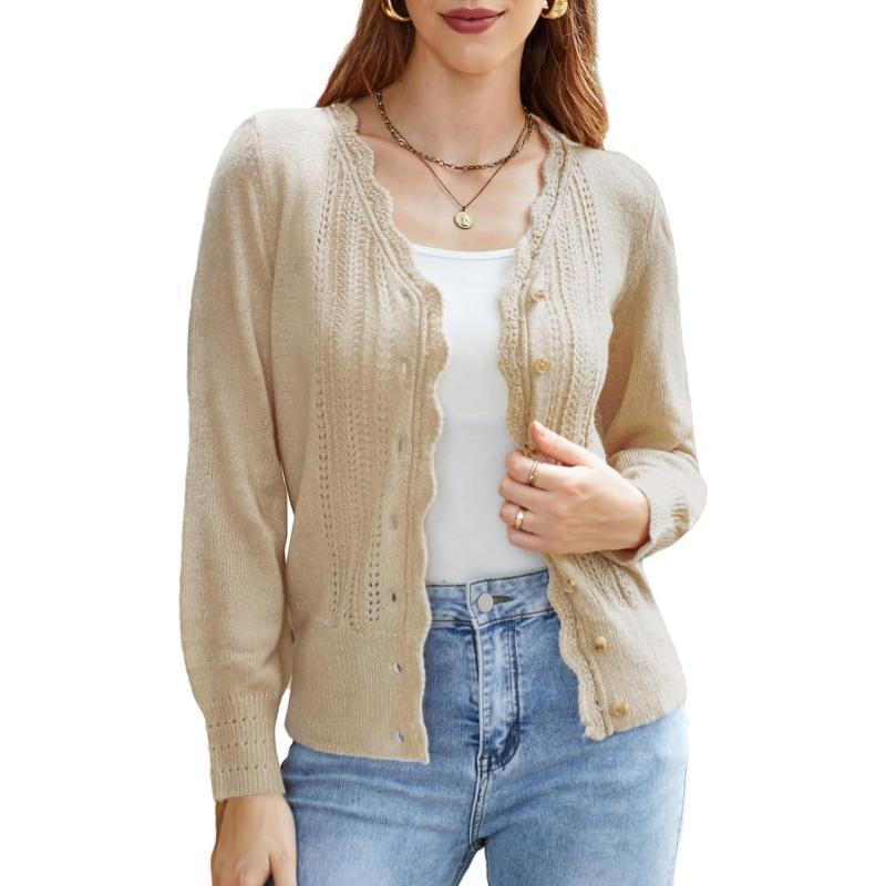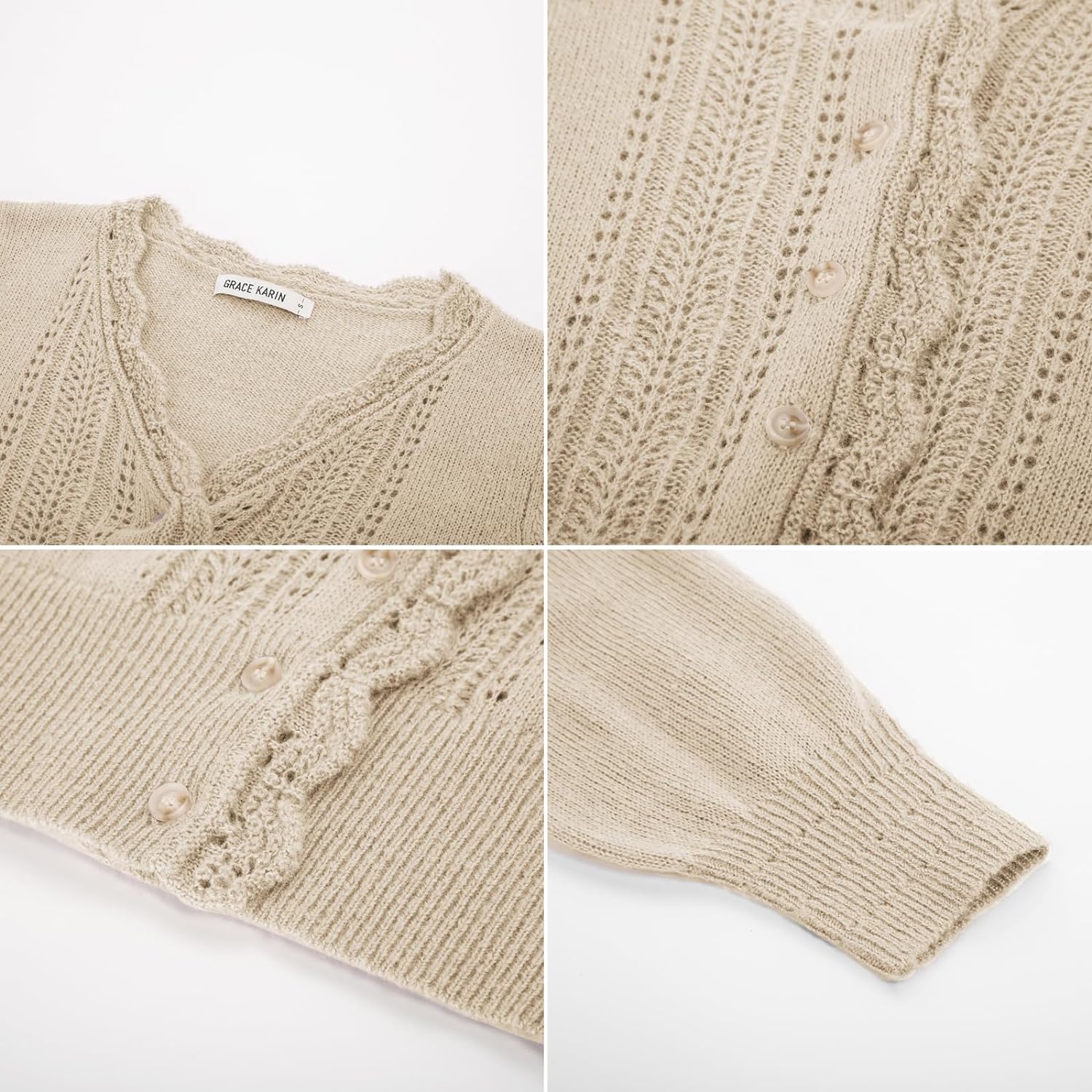 GRACE KARIN Women’s Sweater Cropped Cardigan Knit Shrugs for Dresses Tops Button Down Lightweight Soft(Apricot Long Sleeve)