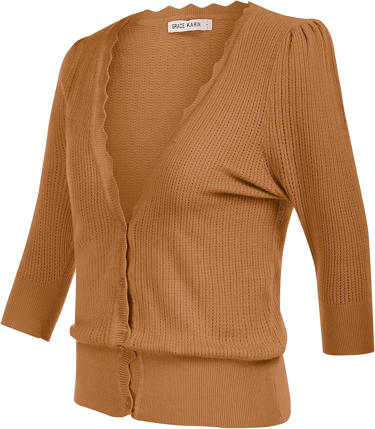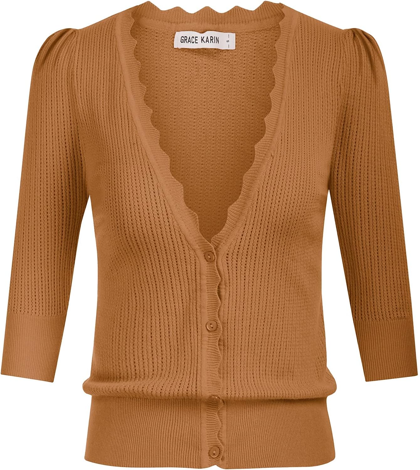 GRACE KARIN Women’s Sweater Cropped Cardigan Knit Shrugs for Dresses Tops Button Down Lightweight Soft(Camel)