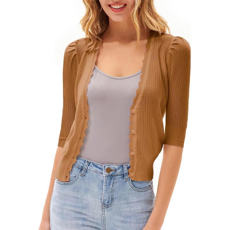 GRACE KARIN Womens Sweater Cropped Cardigan Knit Shrugs for Dresses Tops Button Down Lightweight SoftCamel
