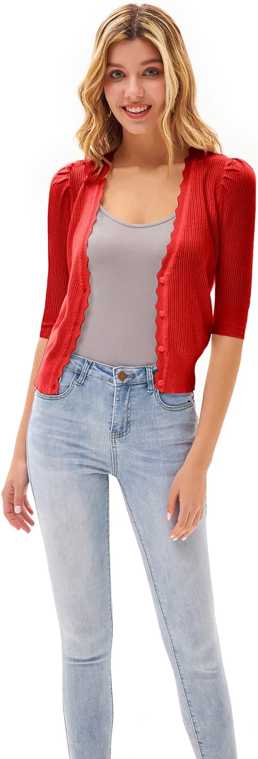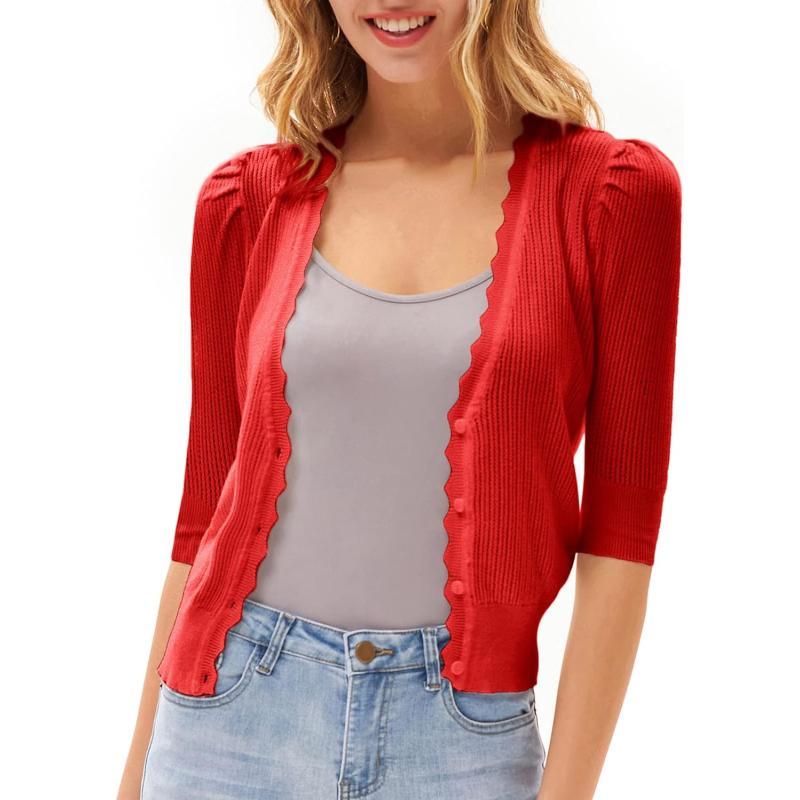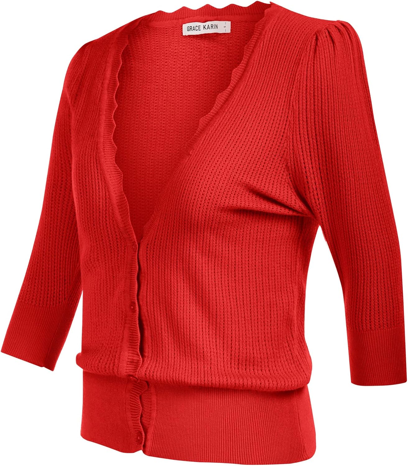 GRACE KARIN Women’s Sweater Cropped Cardigan Knit Shrugs for Dresses Tops Button Down Lightweight Soft(Red)
