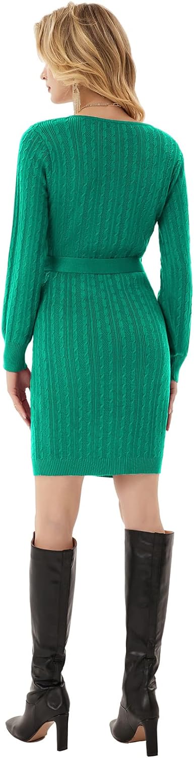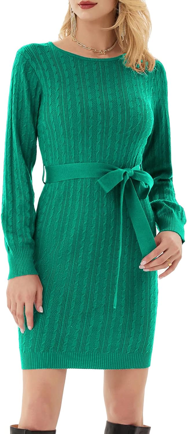 GRACE KARIN Womens Sweater Dress Knitted Mini Sweater Dress Long Sleeves Bodycon Dress Belted(Dark Green)