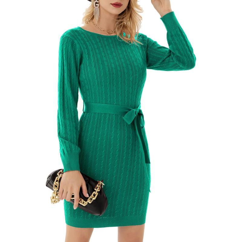 GRACE KARIN Womens Sweater Dress Knitted Mini Sweater Dress Long Sleeves Bodycon Dress BeltedDark Green