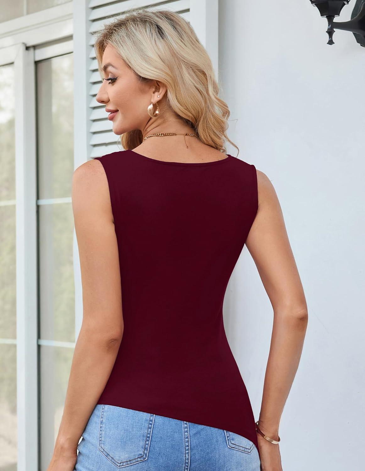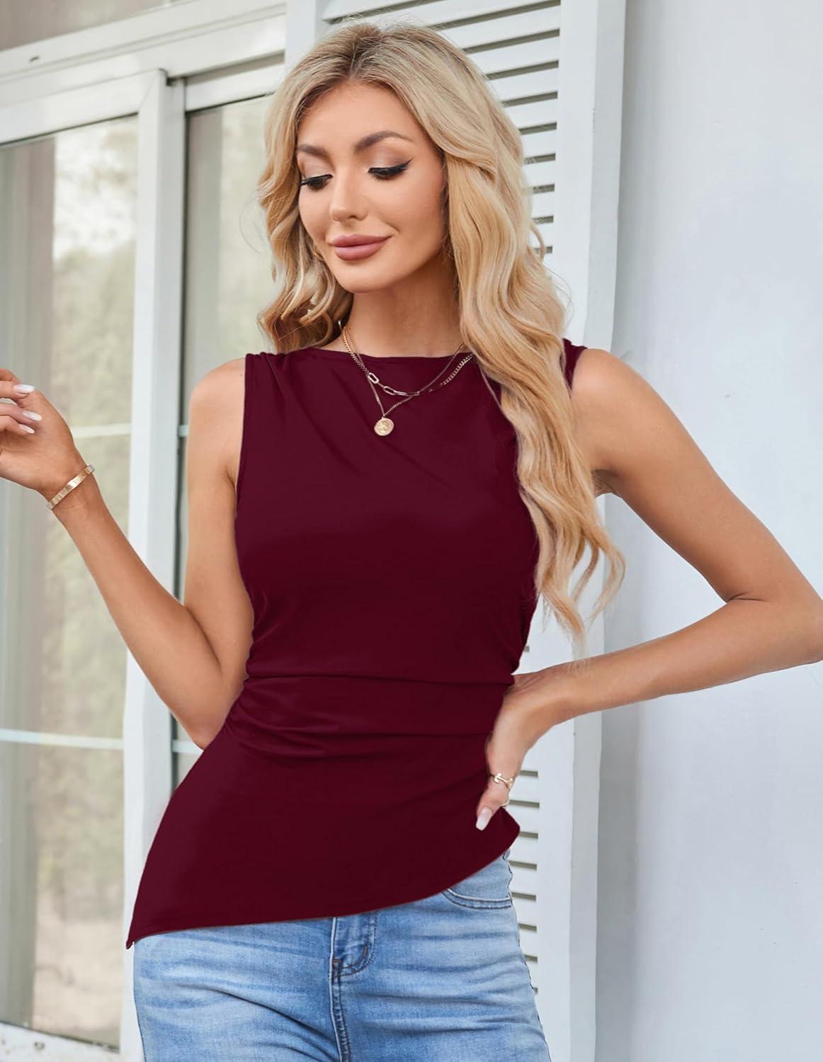GRACE KARIN Women's Tank Tops 2025 Summer Tops Ruched Boat Neck Sleeveless Blouses Asymmetrical Going Out Top(Dark Red)