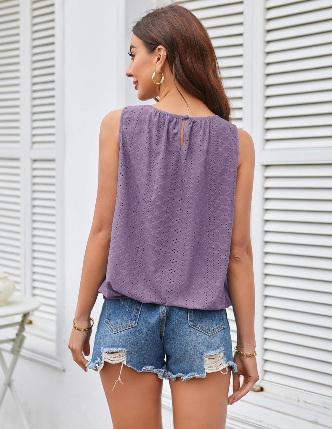 GRACE KARIN Womens Tank Tops V Neck Dressy Casual Cami Sleeveless Camisole Blouses Eyelet Shirts Summer Tank Tops(Lilac)