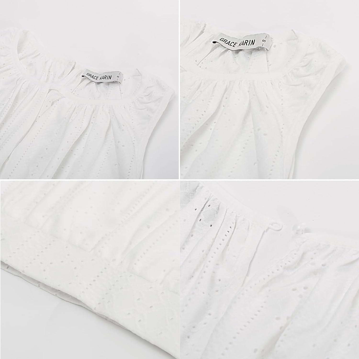 GRACE KARIN Womens Tank Tops V Neck Dressy Casual Cami Sleeveless Camisole Blouses Eyelet Shirts Summer Tank Tops(White)