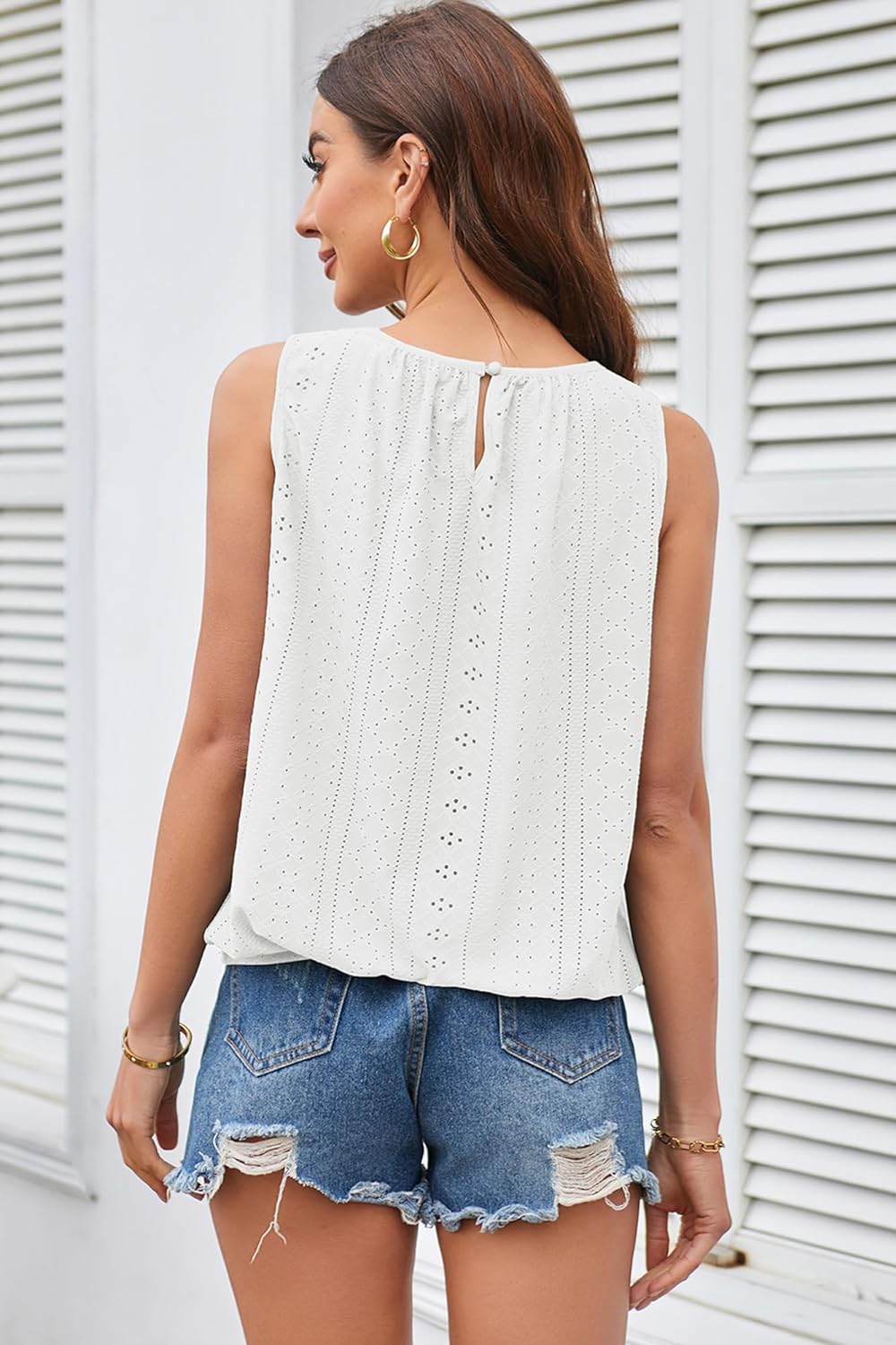 GRACE KARIN Womens Tank Tops V Neck Dressy Casual Cami Sleeveless Camisole Blouses Eyelet Shirts Summer Tank TopsWhite