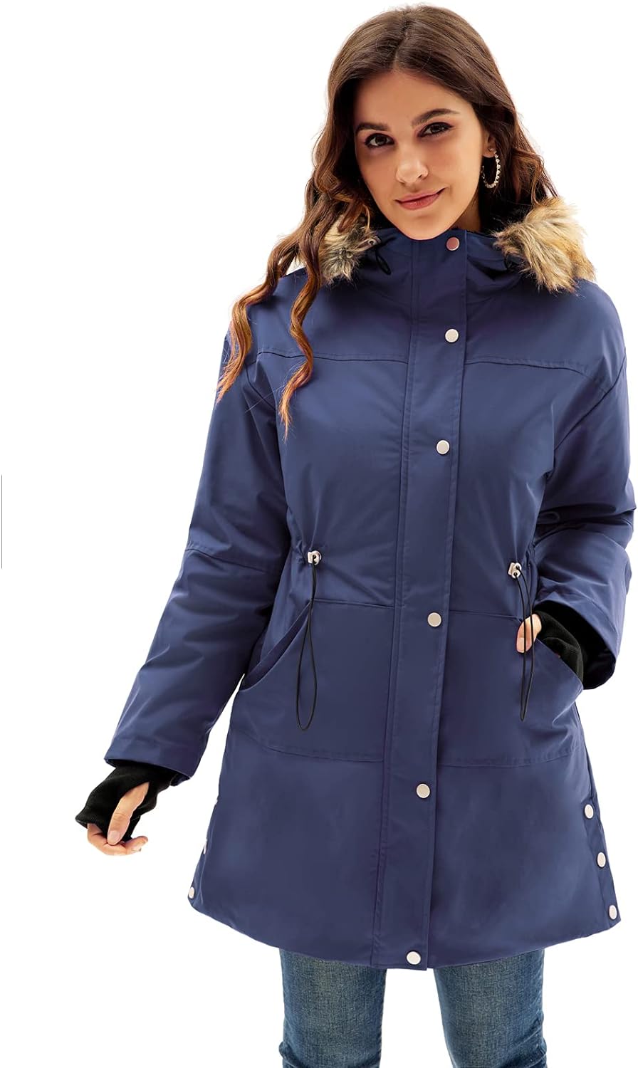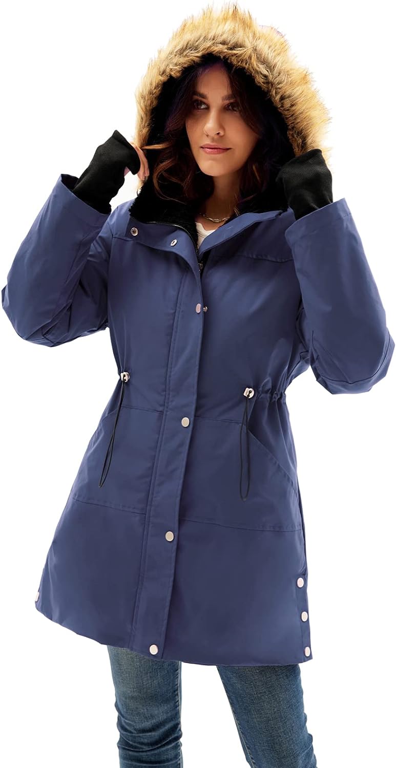 GRACE KARIN Womens Thick Hooded Parkas Coats Windproof Waterproof Faux Fur Fleece Line Down Jackets with PocketsNavy