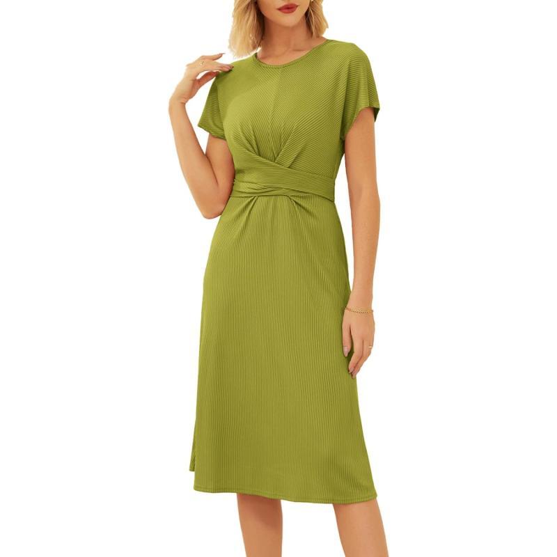 GRACE KARIN Womens Tie Waist Summer Casual Midi Dress Short Sleeve Crew Neck Ribbed Knit DressMoss Green