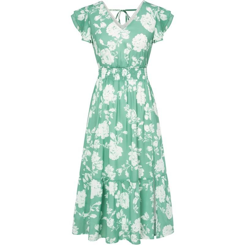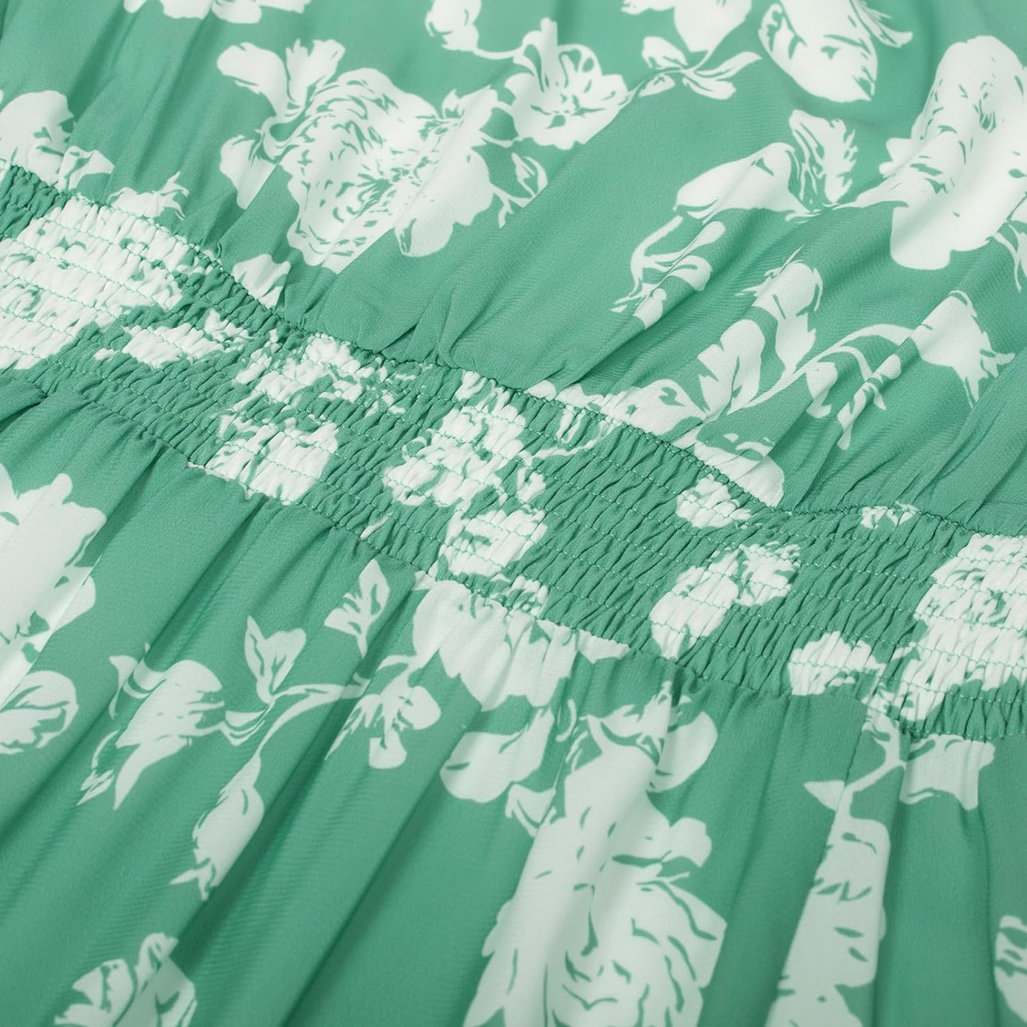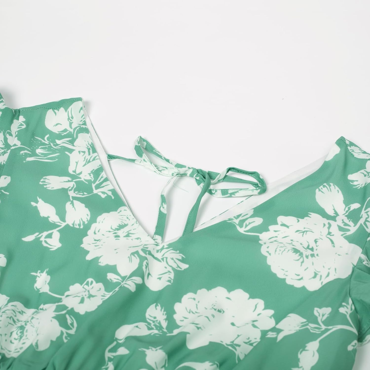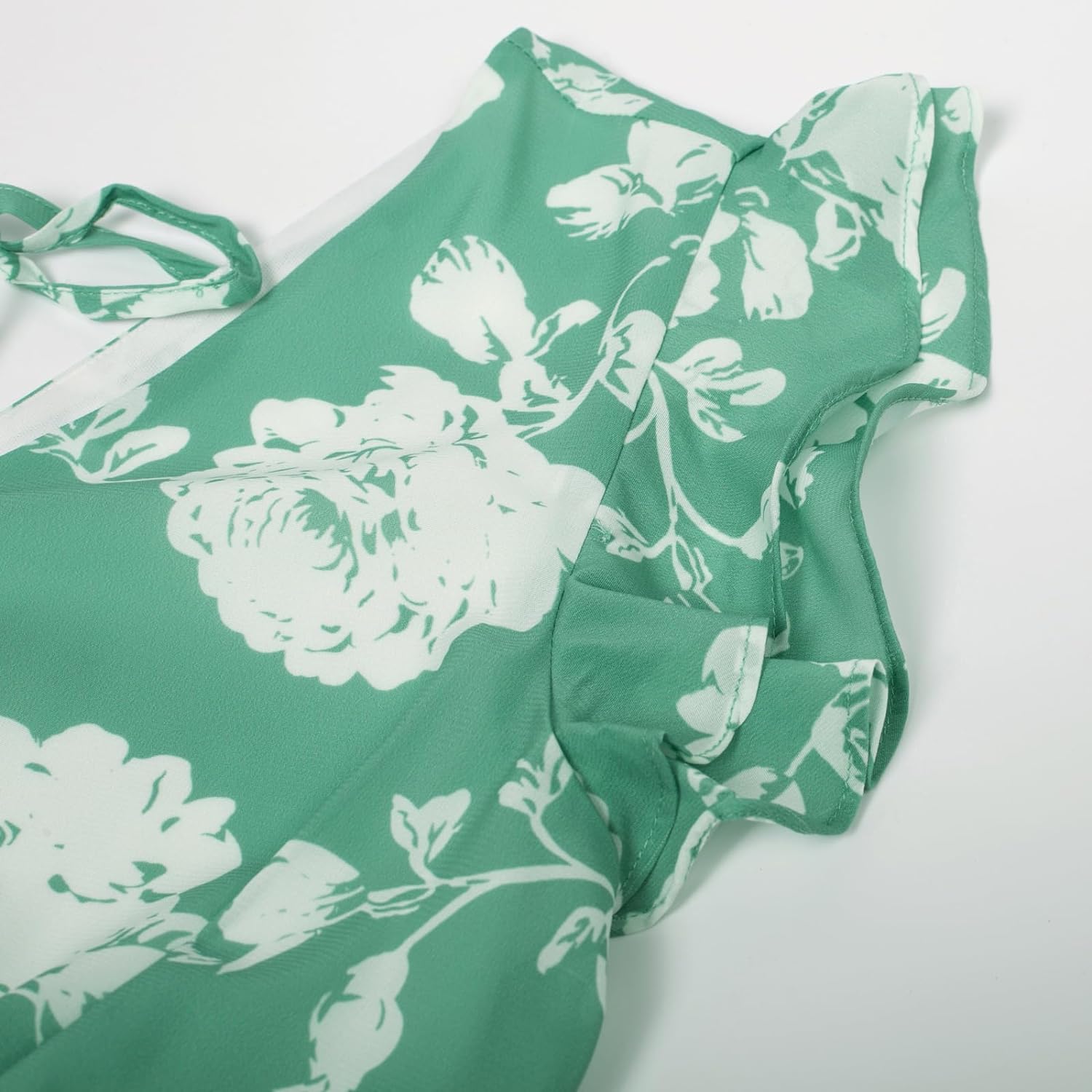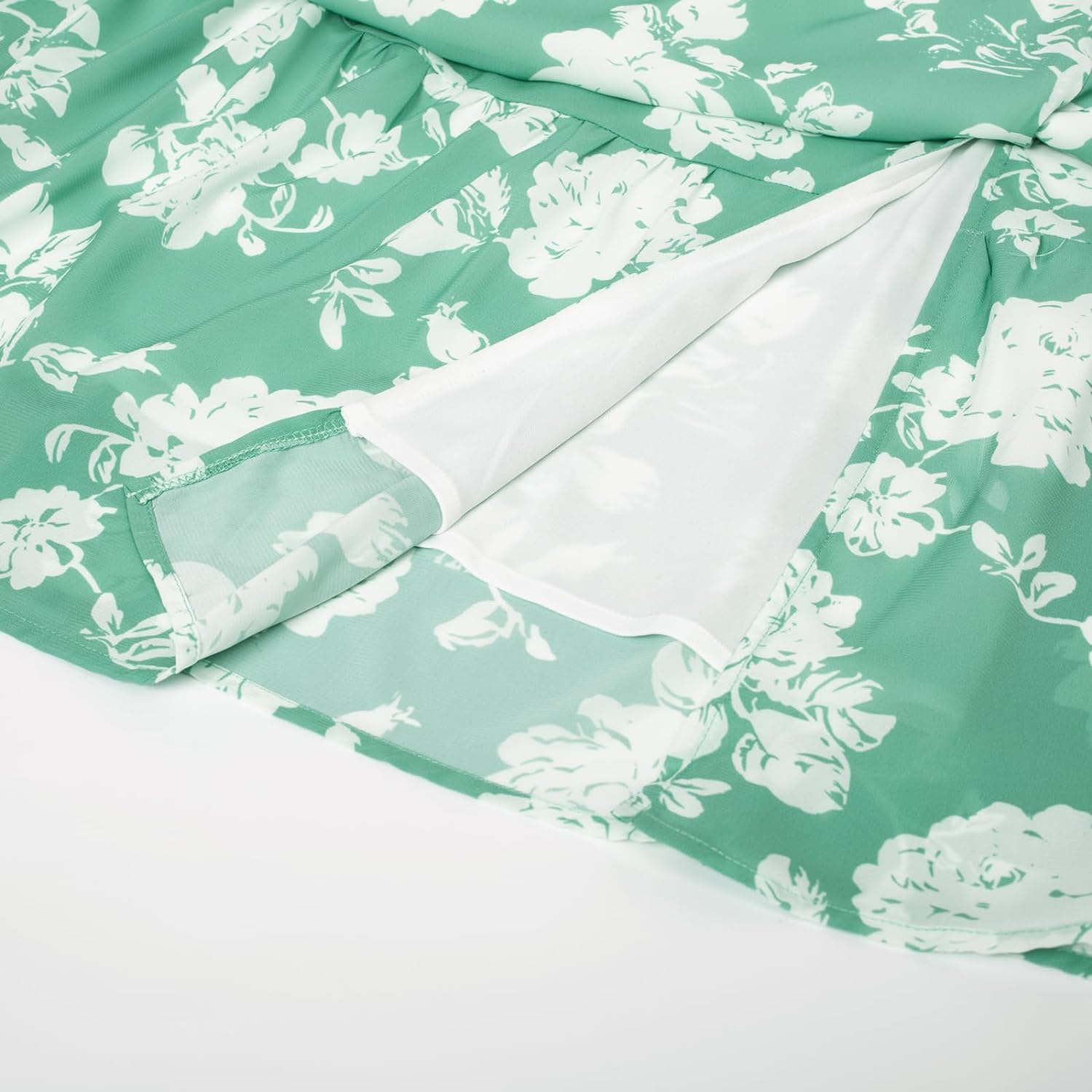 GRACE KARIN Women's V Neck Ruffle Sleeve Summer Dress 2023 Split Flowy Tiered Midi Dress Wedding Guest Cocktail Dresses(Light Green-white Floral)