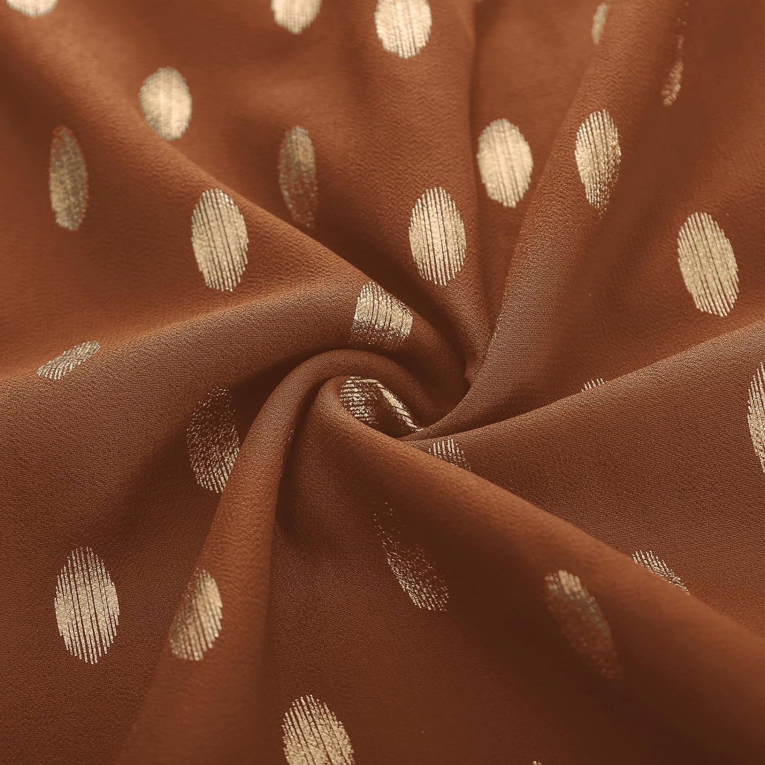 GRACE KARIN Women’s V Neck Ruffle Sleeve Summer Dress 2023 Split Flowy Tiered Midi Dress Wedding Guest Cocktail Dresses(Long Sleeve Brown-gold Dots)