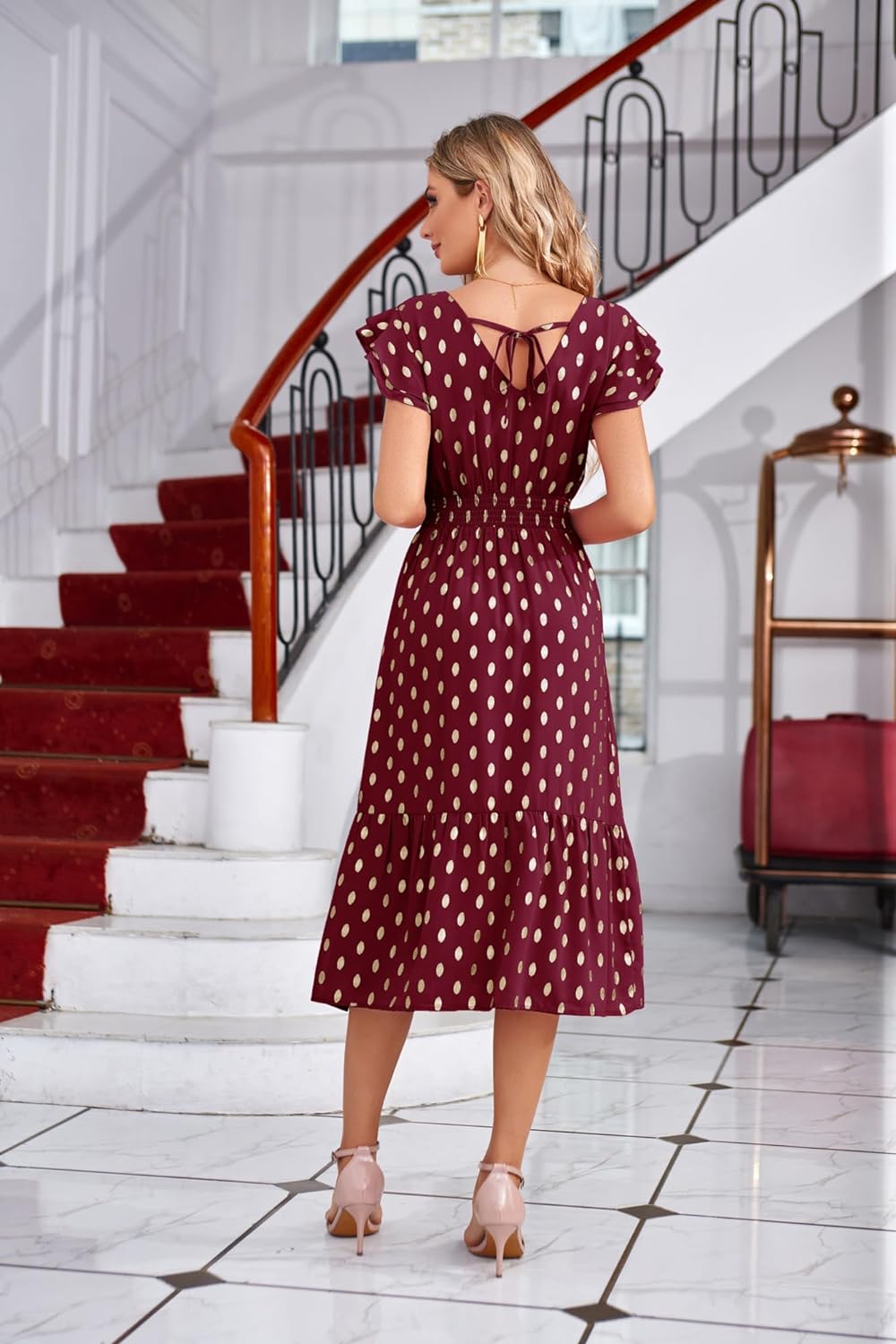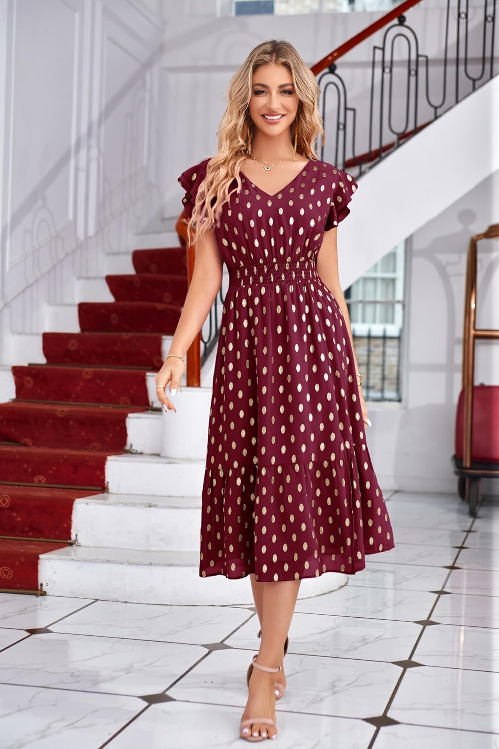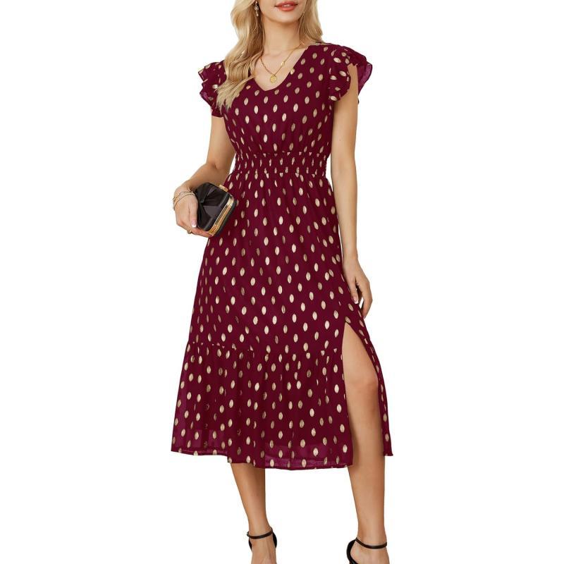Save big on GRACE KARIN Women’s V Neck Ruffle Sleeve Summer Dress 2024 Split Flowy Tiered Midi Dress Wedding Guest Cocktail Dresses(Wine Red-gold Dots) during our summer blowout sale. Limited quantities available.
