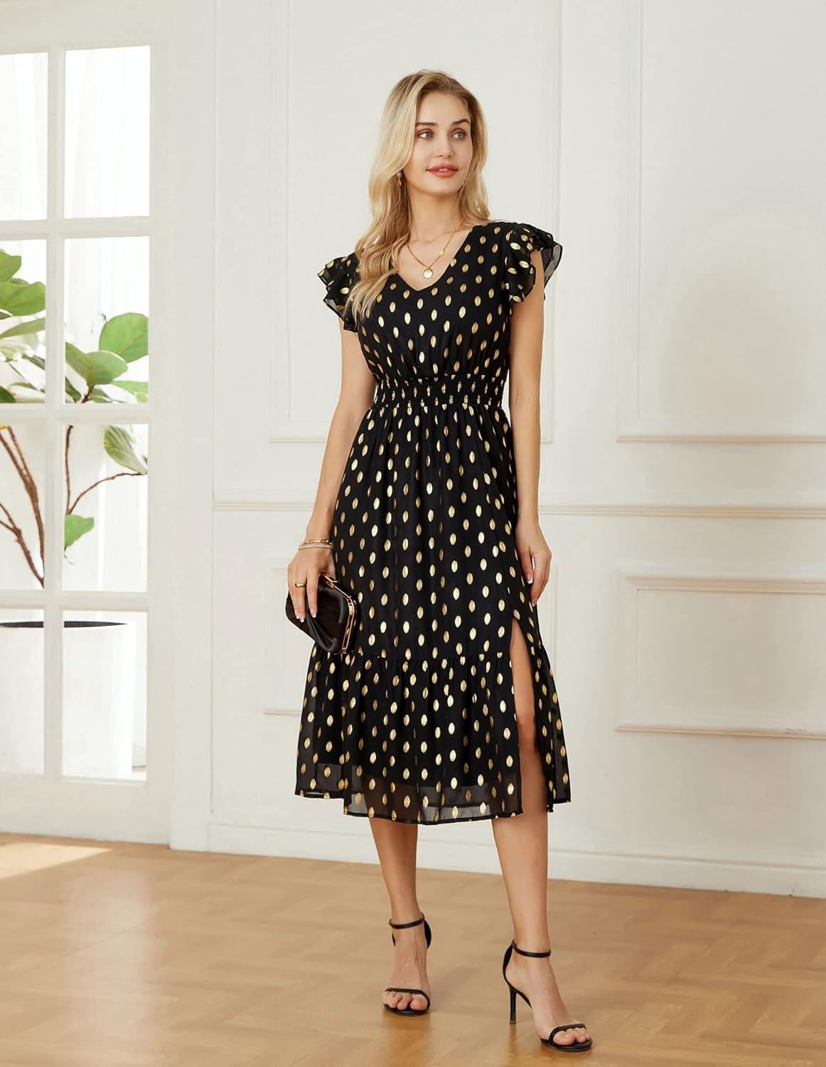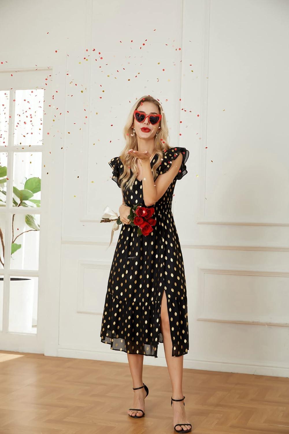Our holiday sale features the best deals on GRACE KARIN Women’s V Neck Ruffle Sleeve Summer Dress 2025 Split Flowy Tiered Midi Dress Wedding Guest Cocktail Dresses(Black-polka Dot) and accessories. Shop now and save!