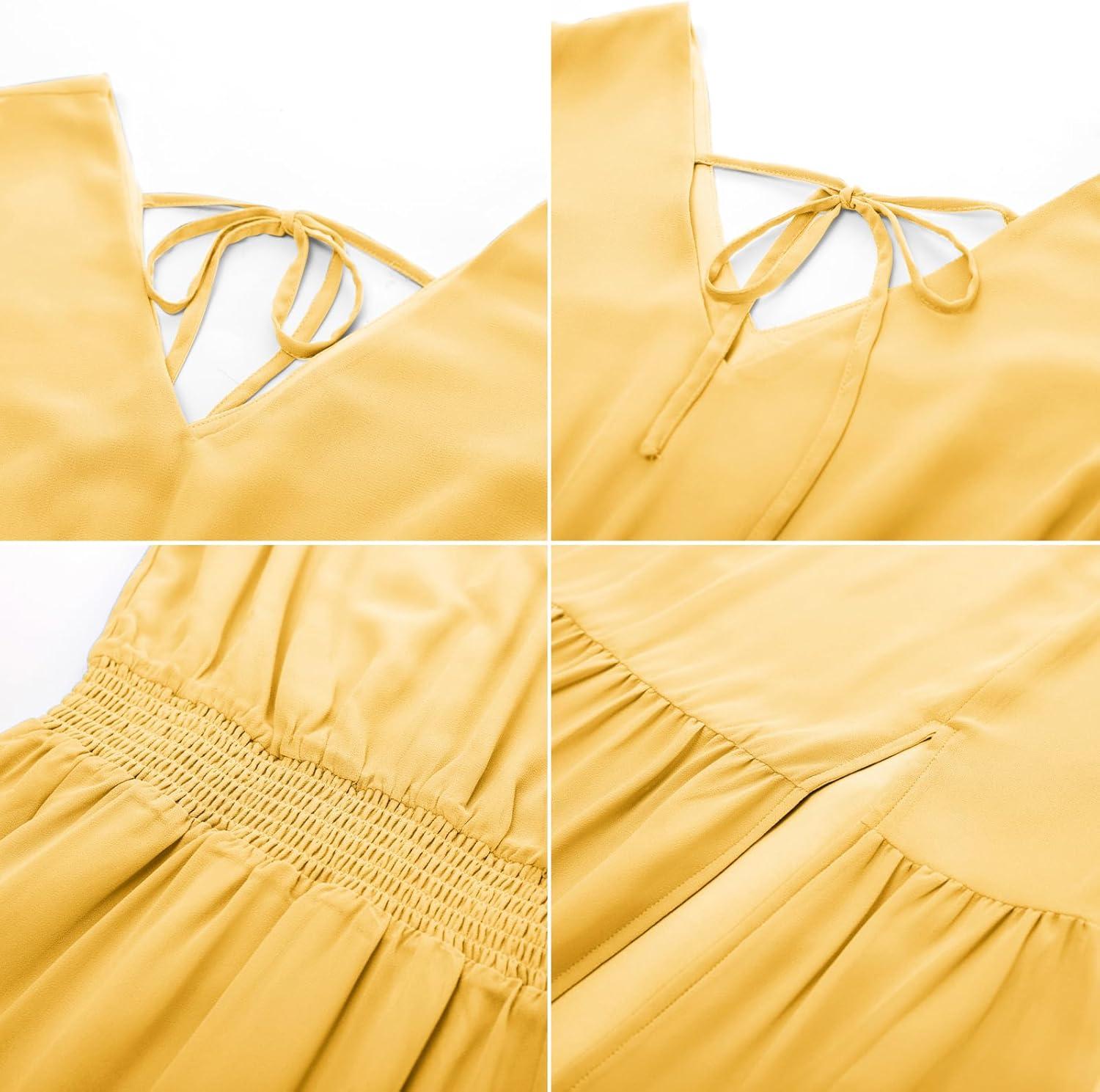 imageGRACE KARIN Womens V Neck Ruffle Sleeve Summer Dress 2025 Split Flowy Tiered Midi Dress Wedding Guest Cocktail DressesLight Yellowplain