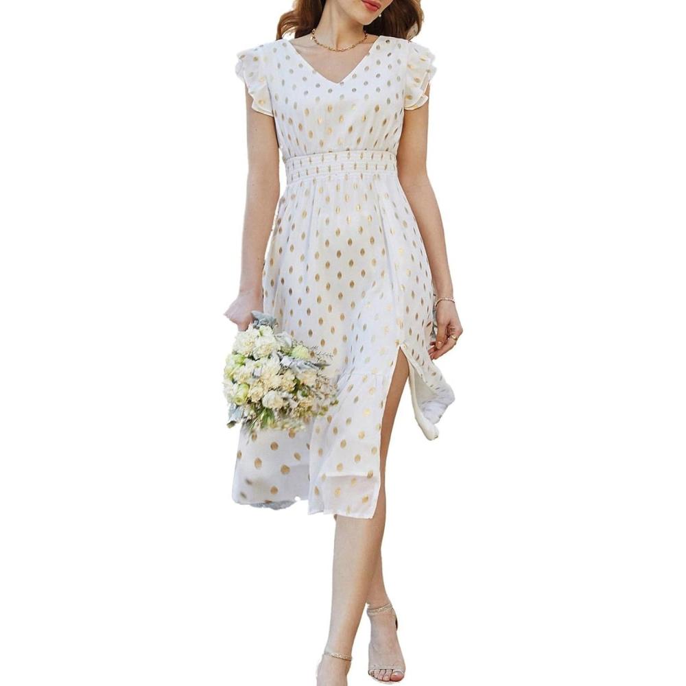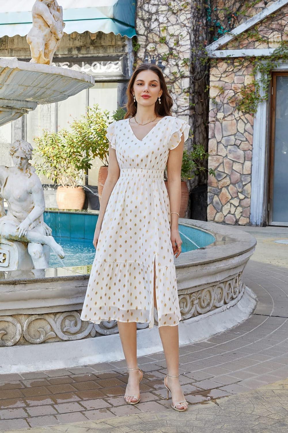 Our clearance event features the best deals on GRACE KARIN Women’s V Neck Ruffle Sleeve Summer Dress 2025 Split Flowy Tiered Midi Dress Wedding Guest Cocktail Dresses(White-polka Dot) and accessories. Shop now!