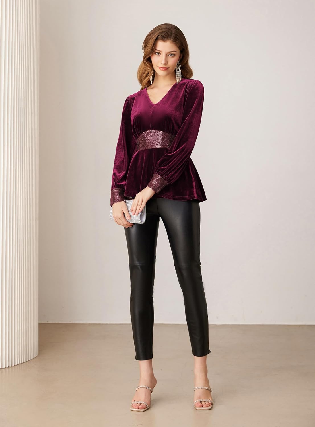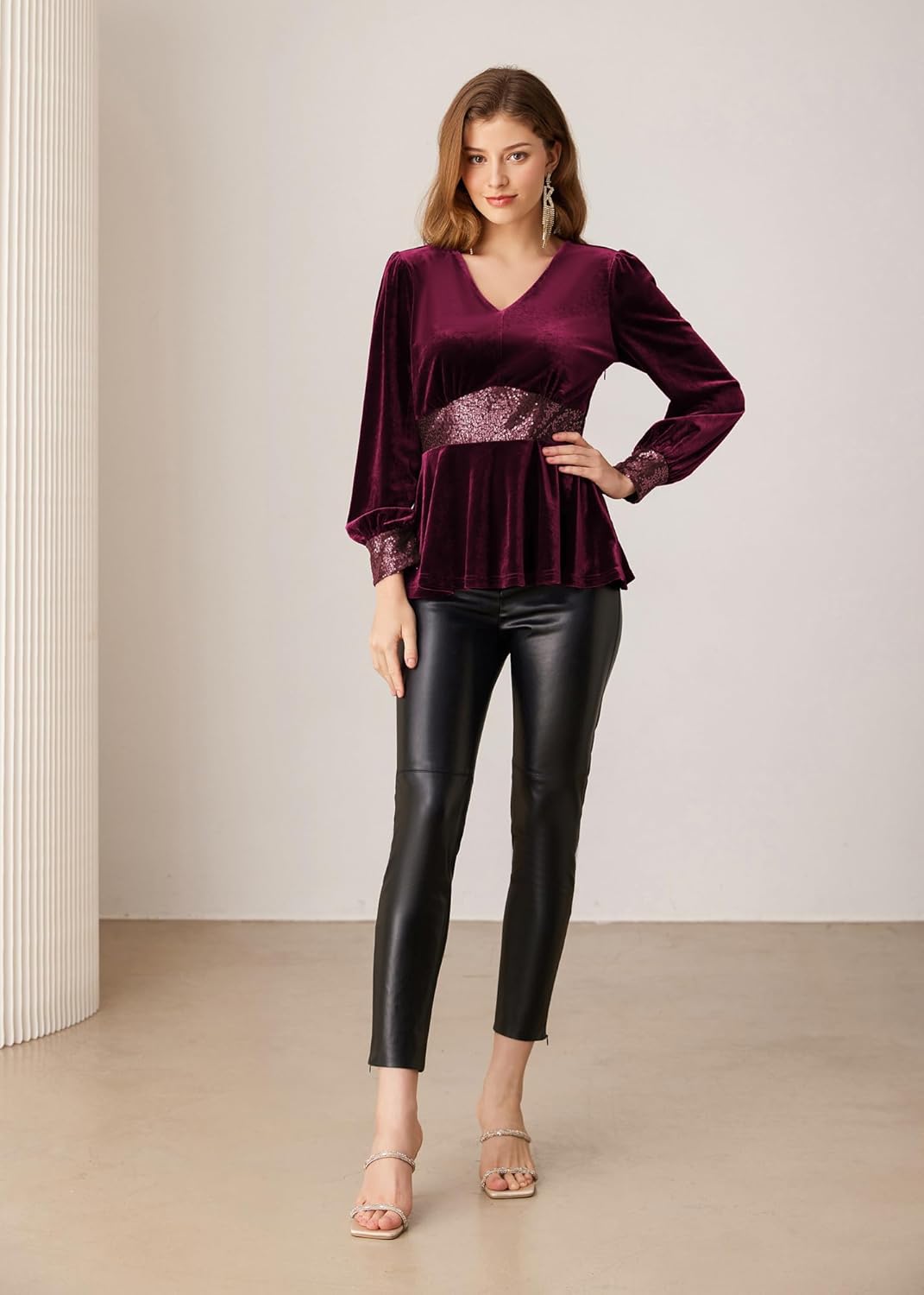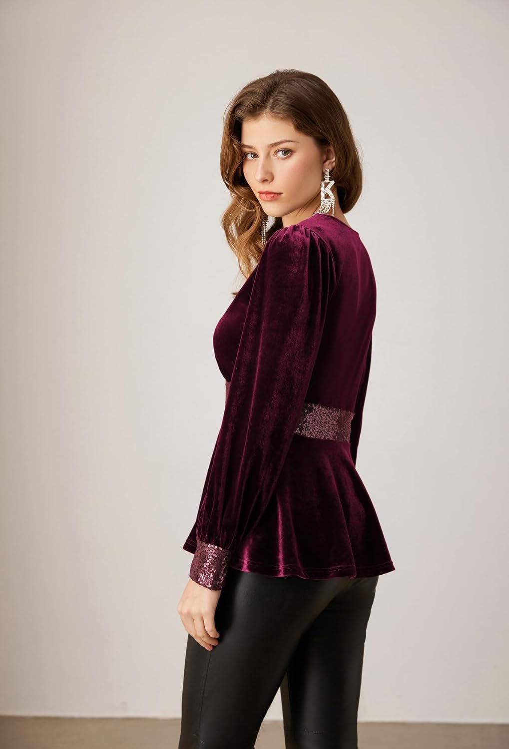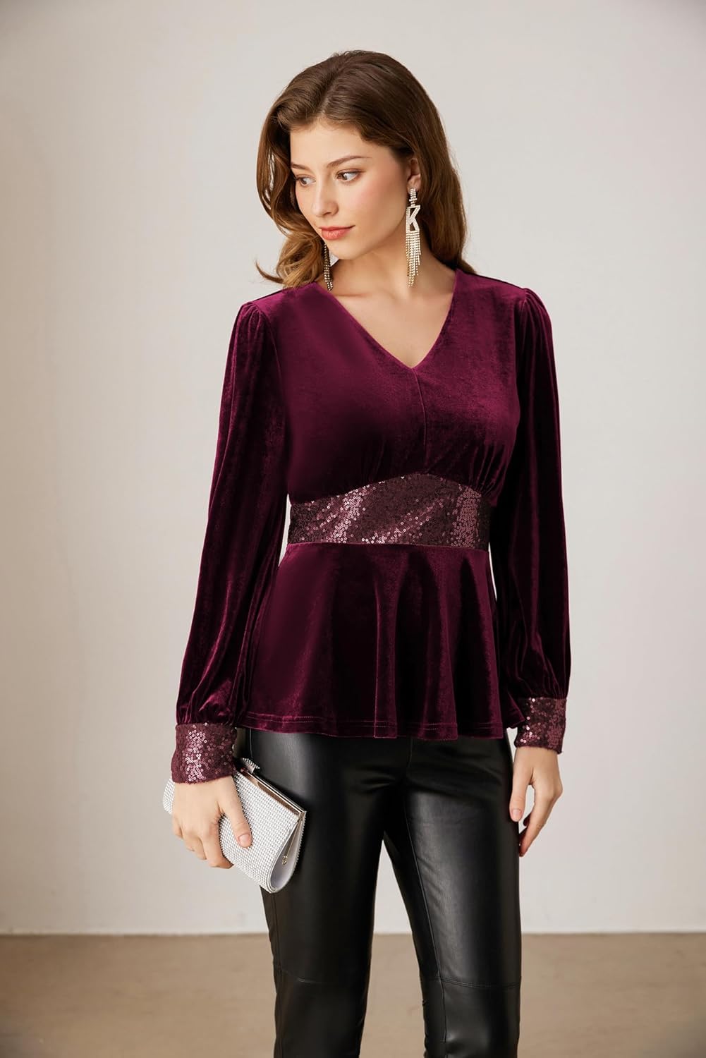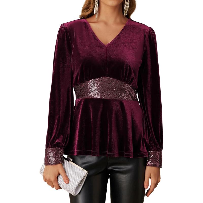 Don’t miss out on our limited-time offer: get a free {accessory} with your purchase of GRACE KARIN Women’s V Neck Velvet Party Tops Long Sleeve Sparkly Sequin Peplum Cockatail Formal Fall Winter Blouse Tops(Dark Red).