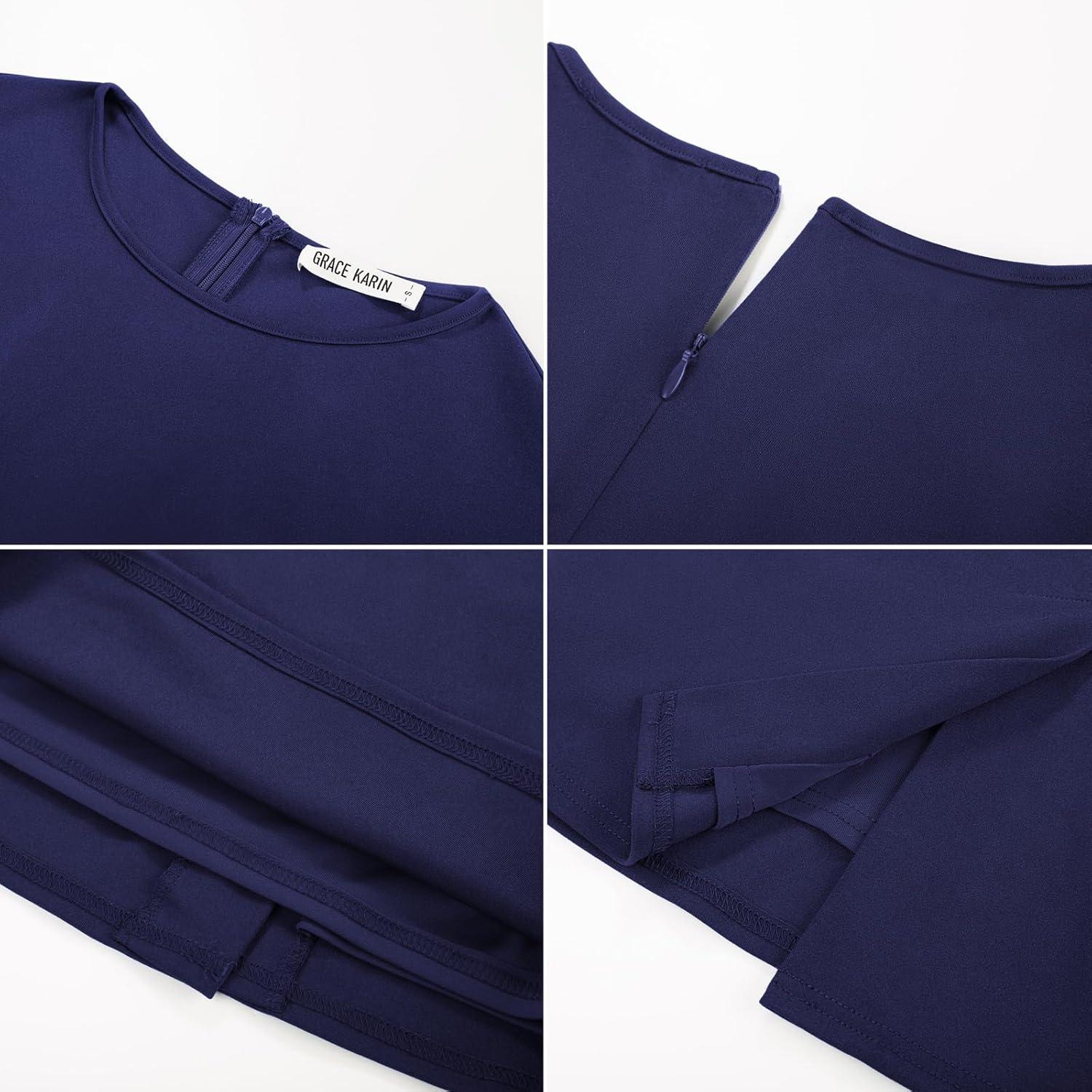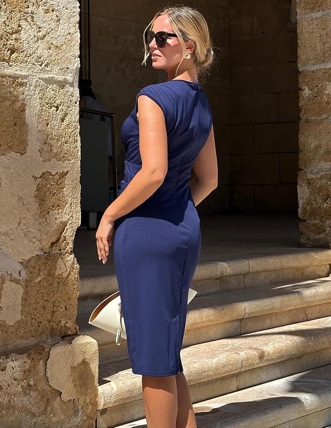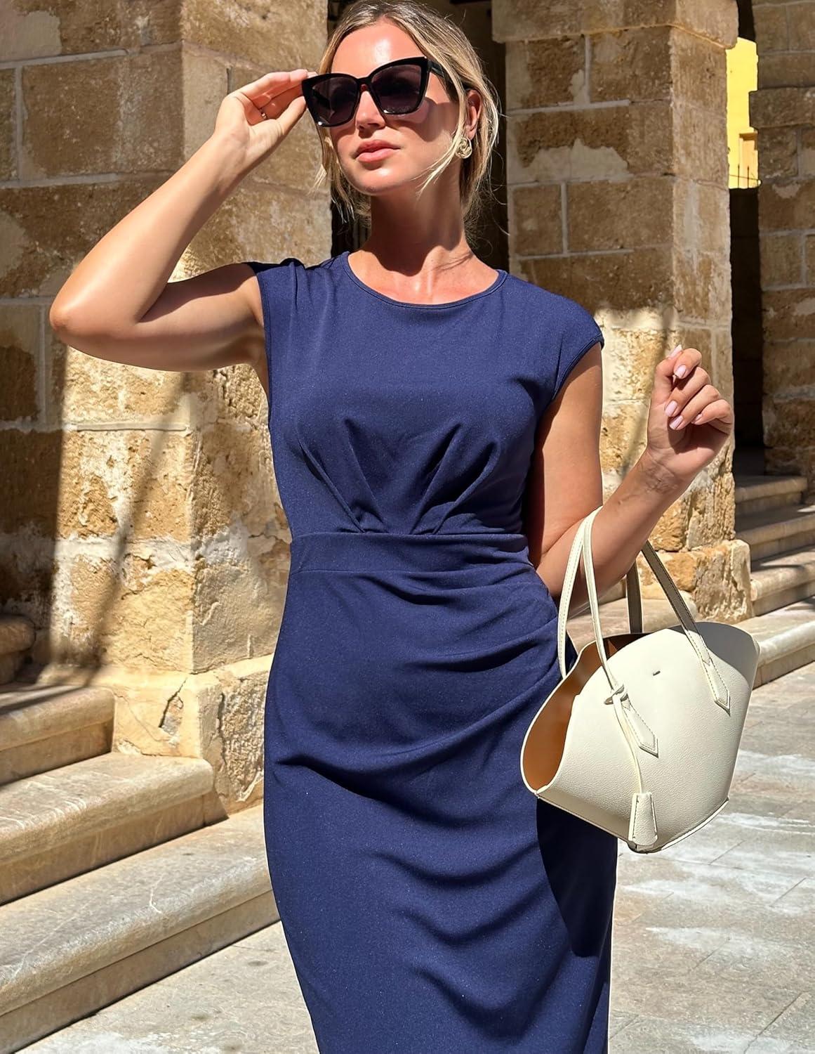 GRACE KARIN Women's Wear to Work Dresses 2025 Cap Sleeve Bodycon Midi Dress Ruched Business Office Pencil Dress(Navy Blue)