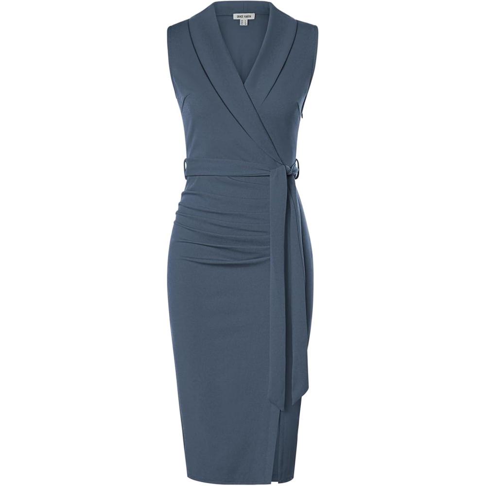 GRACE KARIN Women’s Wear to Work Sleeveless Ruched Bodycon Office Pencil Midi Dresses with Belt(Gray Blue)