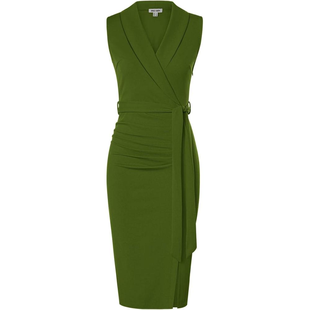 Get up to 50% off on GRACE KARIN Women’s Wear to Work Sleeveless Ruched Bodycon Office Pencil Midi Dresses with Belt(Olive Green) styles during our spring sale event.