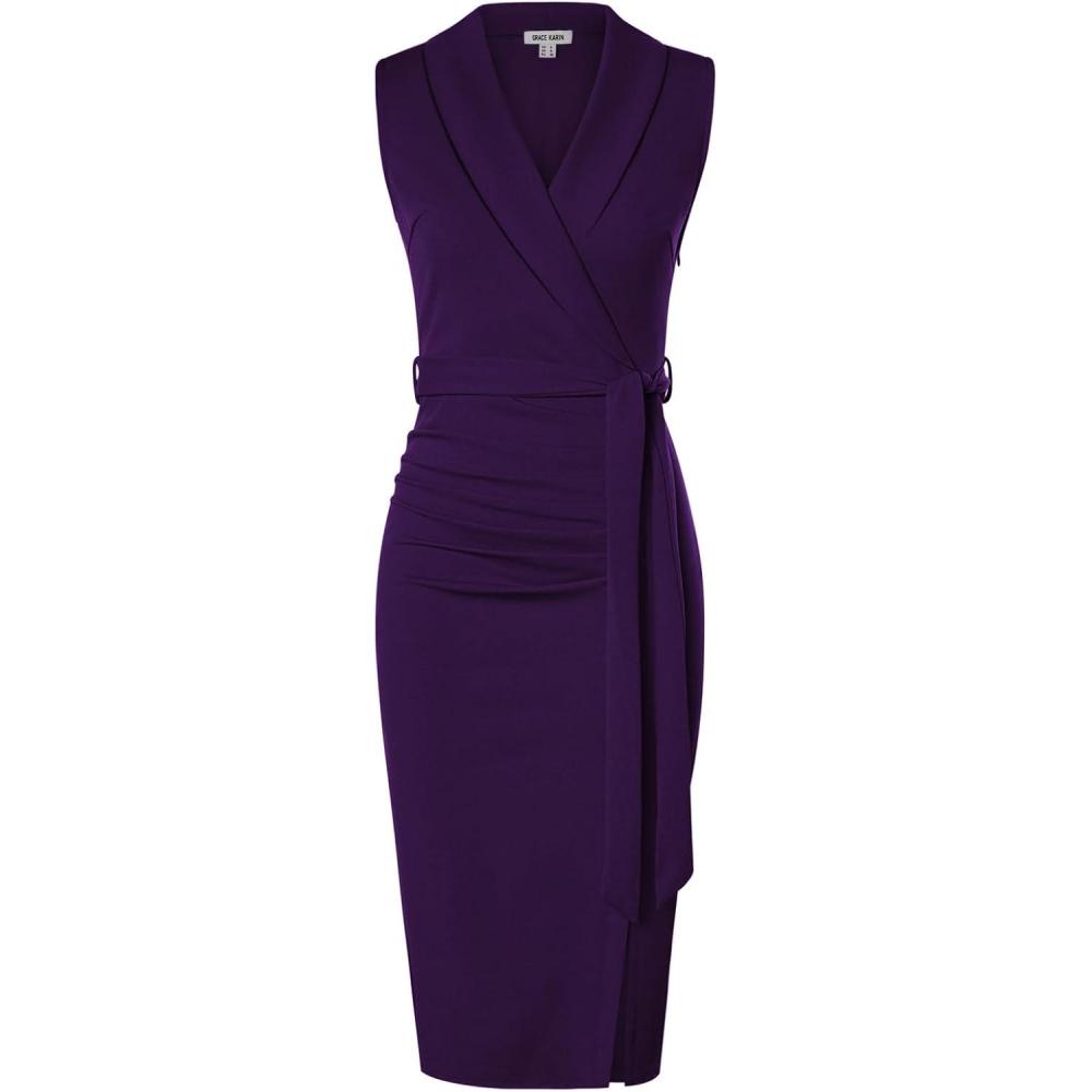 imageGRACE KARIN Womens Wear to Work Sleeveless Ruched Bodycon Office Pencil Midi Dresses with BeltRose Purple