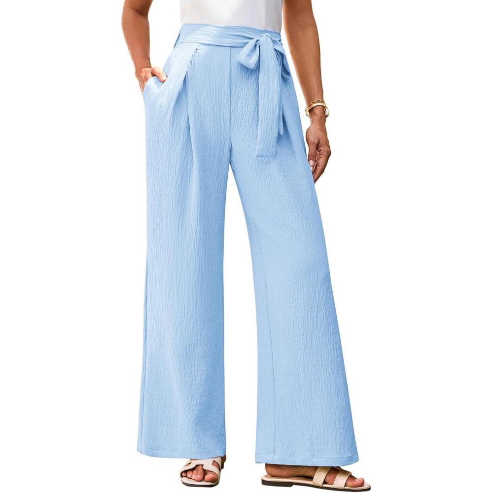 imageGRACE KARIN Womens Wide Leg Pants 2025 High Waist Adjustable Pleated Trousers Business Casual PantsBlue