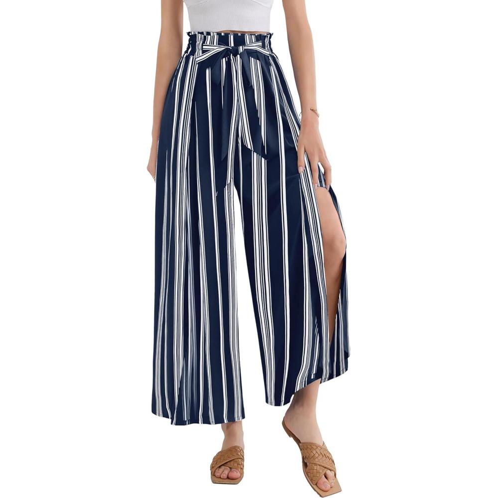 Get the GRACE KARIN Women’s Wide Leg Pants with Pockets Lightweight High Waisted Tie Knot Caual Loose Split Flowy Palazzo Trousers(Stripe Navy) you want at a price you can afford with our markdown sale.