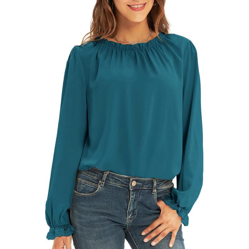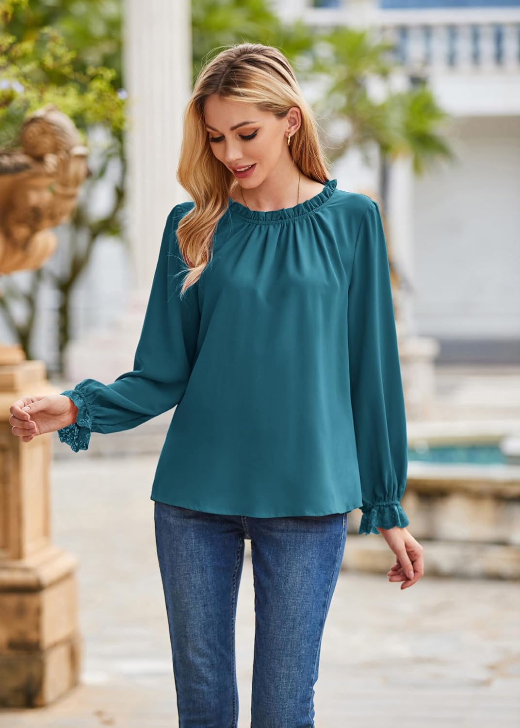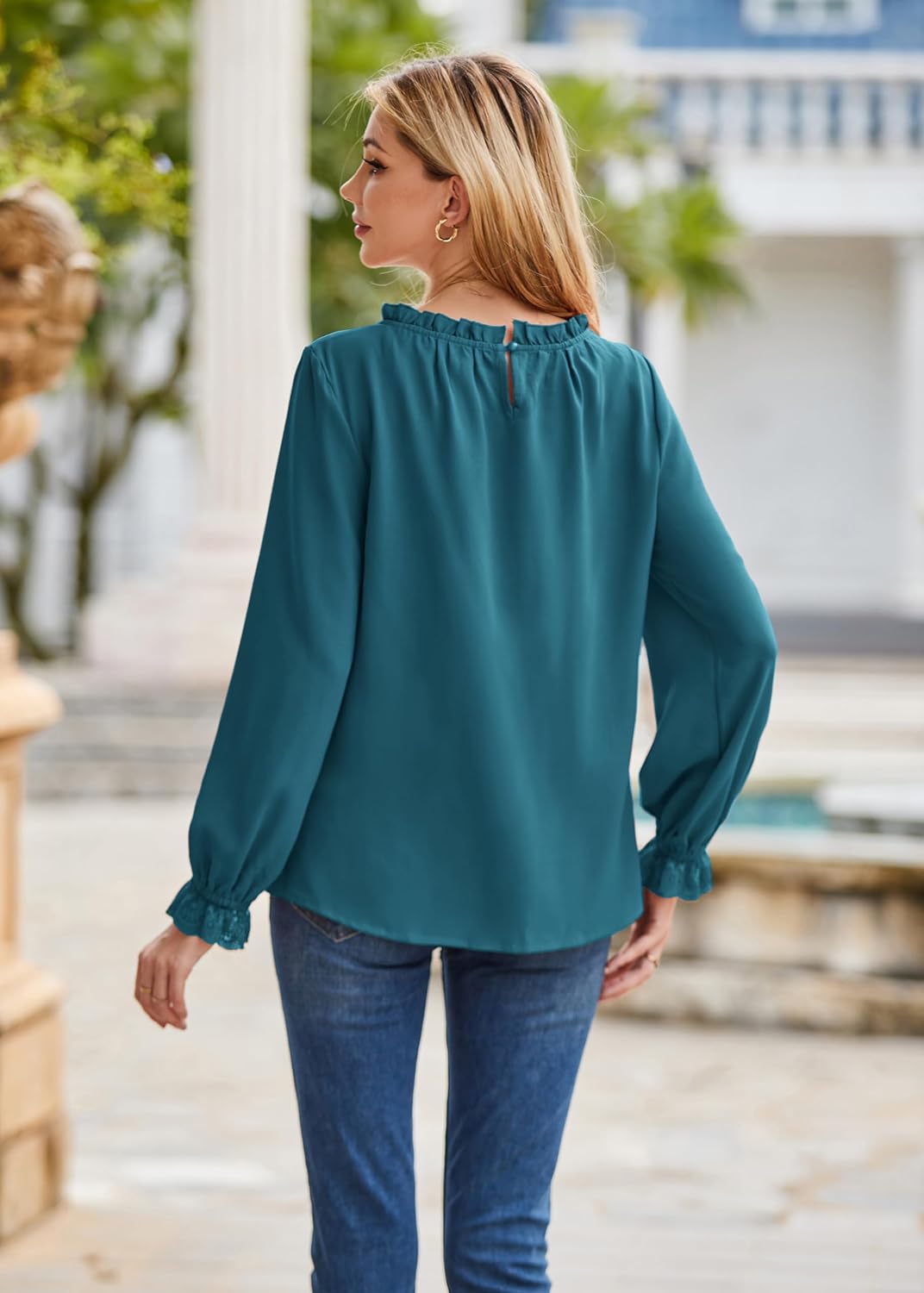 GRACE KARIN Women's Work Blouses Dressy Casual Tank Tops Long Sleeve Dress Shirts Frill Collar Business Professional(Peacock Blue-long Sleeve)