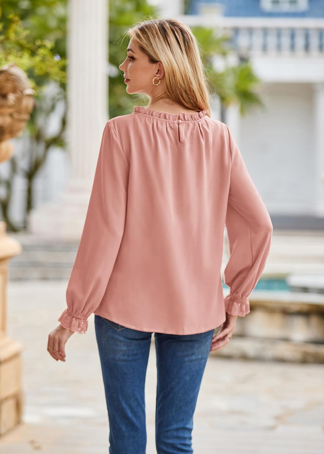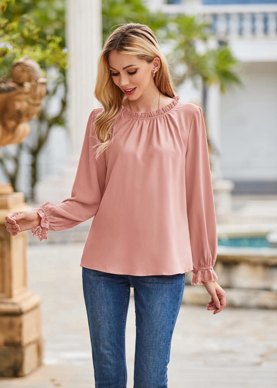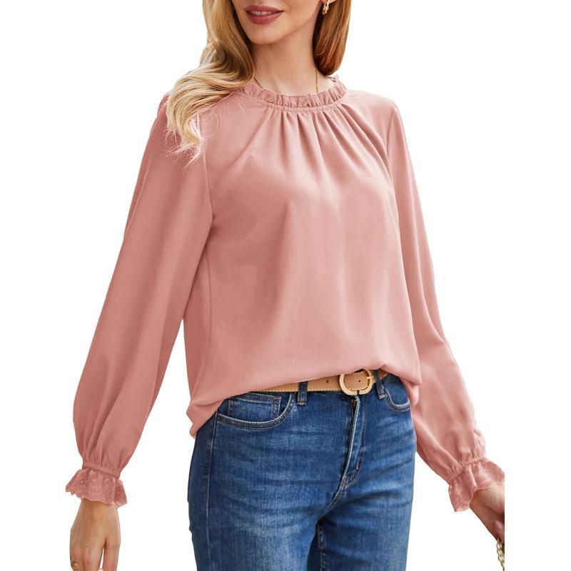 GRACE KARIN Womens Work Blouses Dressy Casual Tank Tops Long Sleeve Dress Shirts Frill Collar Business ProfessionalPinklong Sleeve