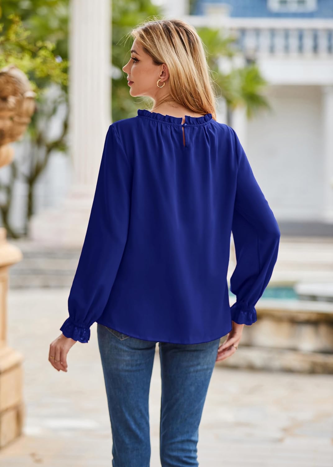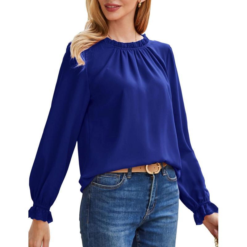 GRACE KARIN Womens Work Blouses Dressy Casual Tank Tops Long Sleeve Dress Shirts Frill Collar Business ProfessionalRoyal Bluelong Sleeve
