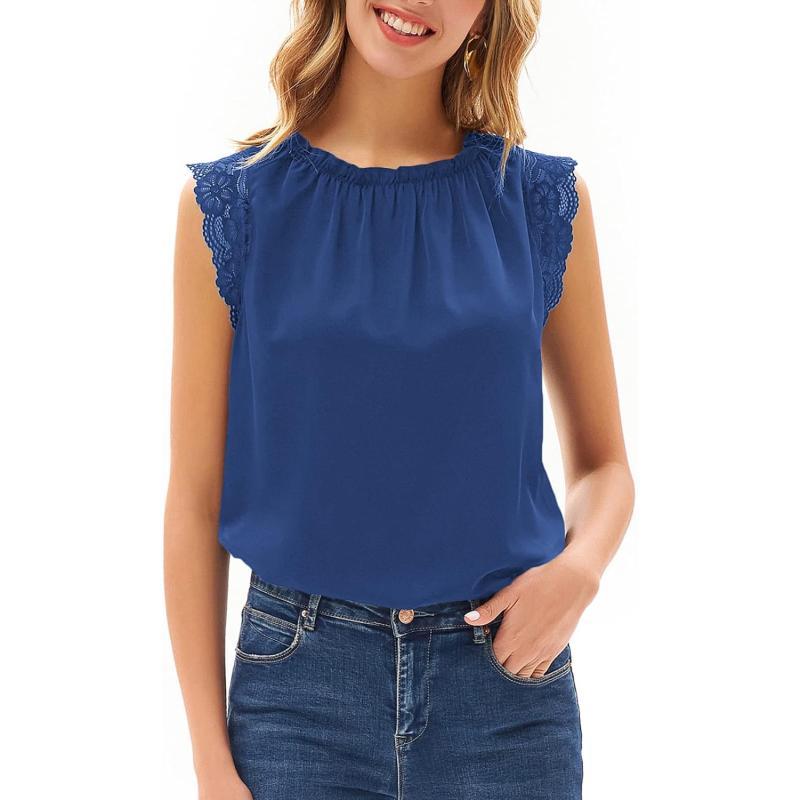 GRACE KARIN Womens Work Blouses Dressy Casual Tank Tops Long Sleeve Dress Shirts Frill Collar Business ProfessionalRoyal Blue
