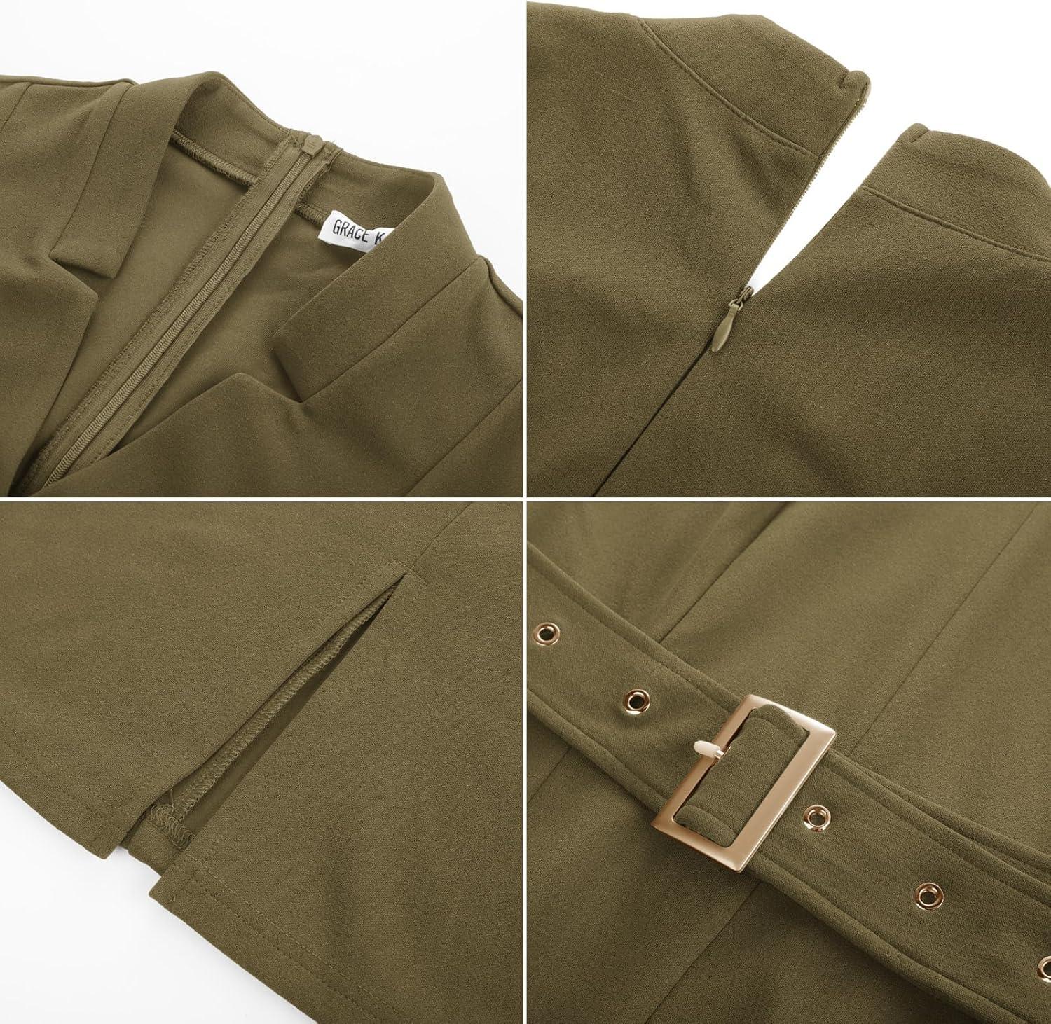 imageGRACE KARIN Womens Work Dress 34 Sleeve V Neck Bodycon Sheath Dress Zipper Up Office Business Dresses with BeltGrey Green