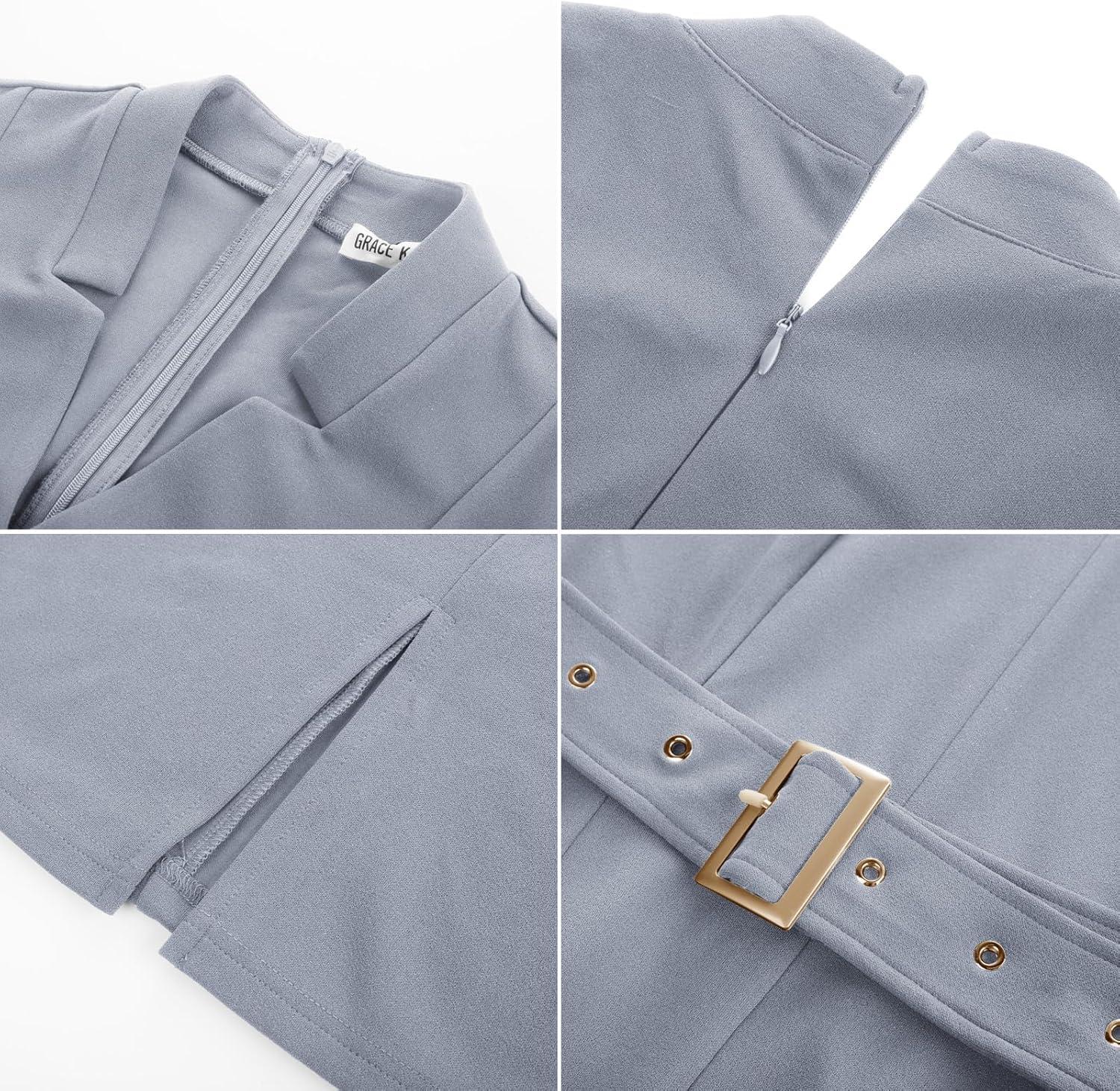 GRACE KARIN Women's Work Dress 3/4 Sleeve V Neck Bodycon Sheath Dress Zipper Up Office Business Dresses with Belt(Light Gray)