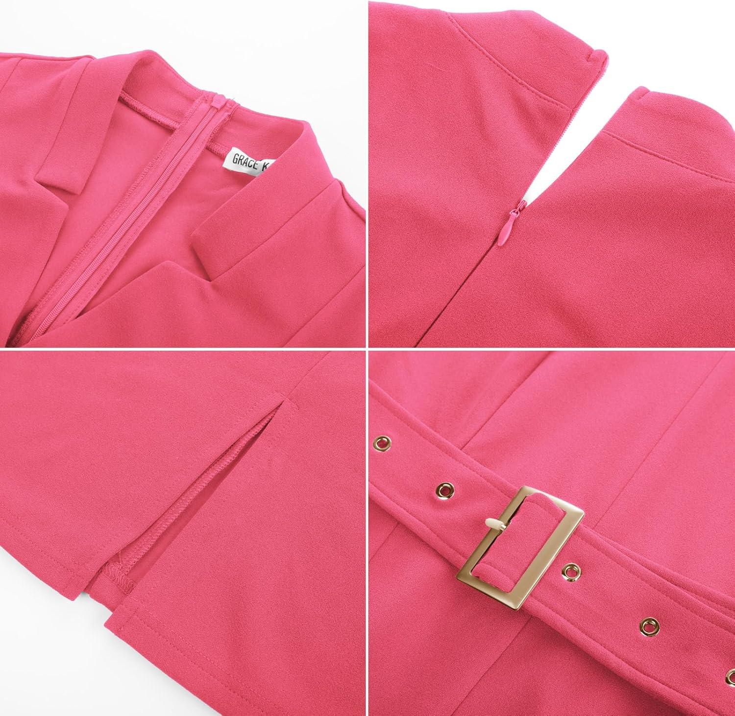 GRACE KARIN Women’s Work Dress 3/4 Sleeve V Neck Bodycon Sheath Dress Zipper Up Office Business Dresses with Belt(Pink)