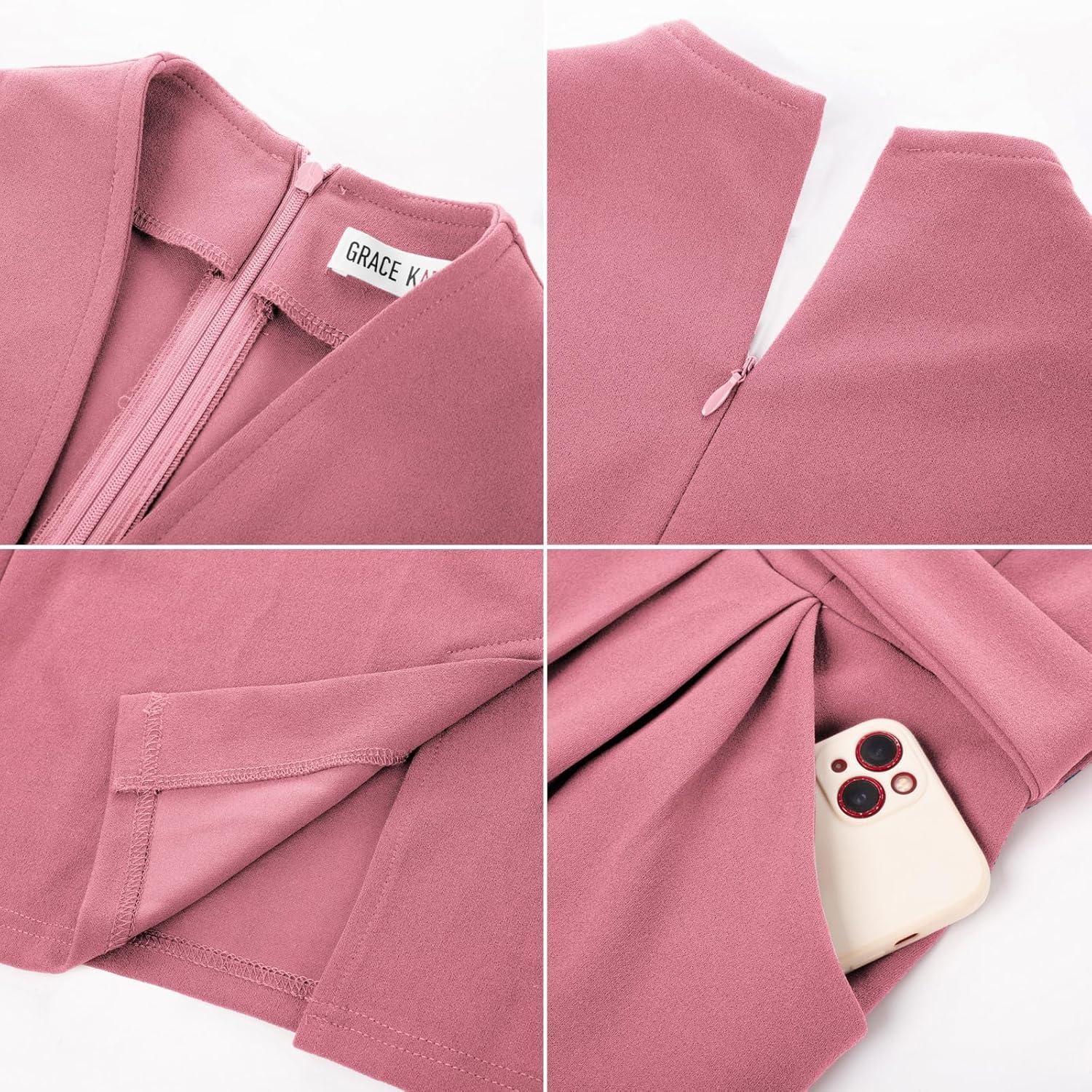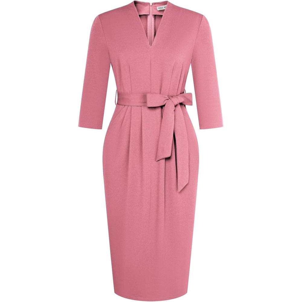 Get your hands on our exclusive GRACE KARIN Womens Work Dresses V Neck 3/4 Sleeve Back Zipper Tie Waist Bodycon Dress Office Cocktail Dress with Pockets(Pink) collection, now at a discounted price.