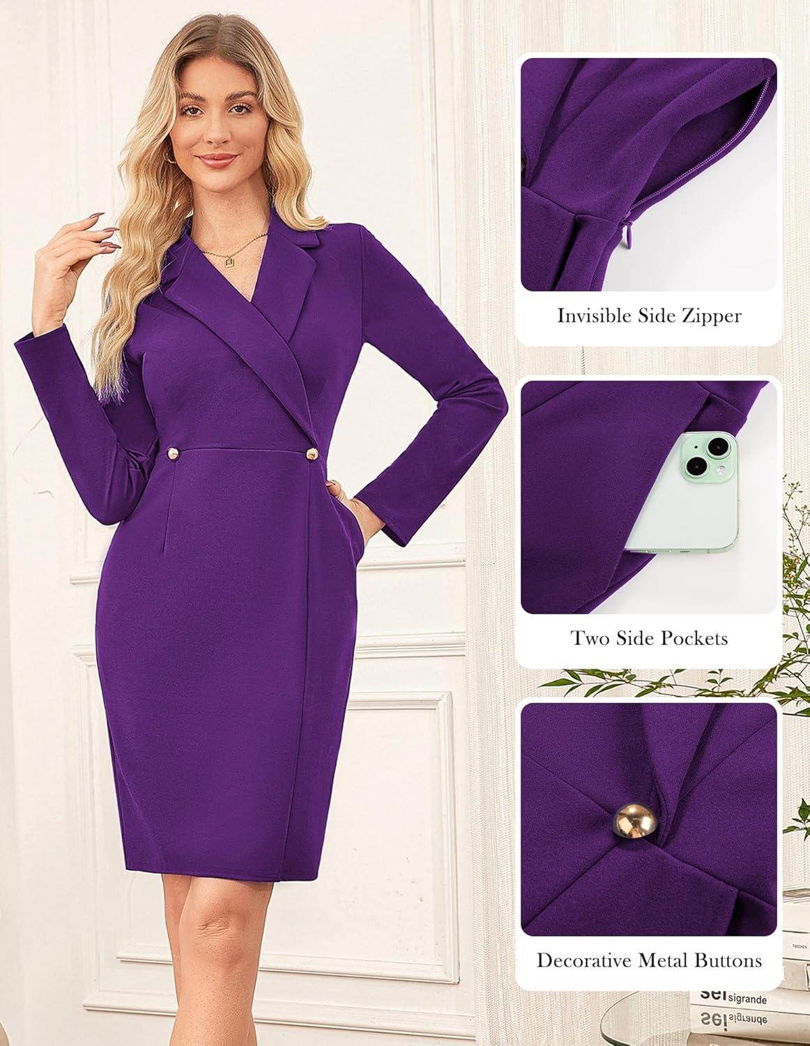 Don’t wait, get up to 50% off on GRACE KARIN Work Dresses for Women 2025 Long Sleeve Business Dress Elegant Wrap Church Office Sheath Dress with Pockets(Purple) during our end-of-season sale event.