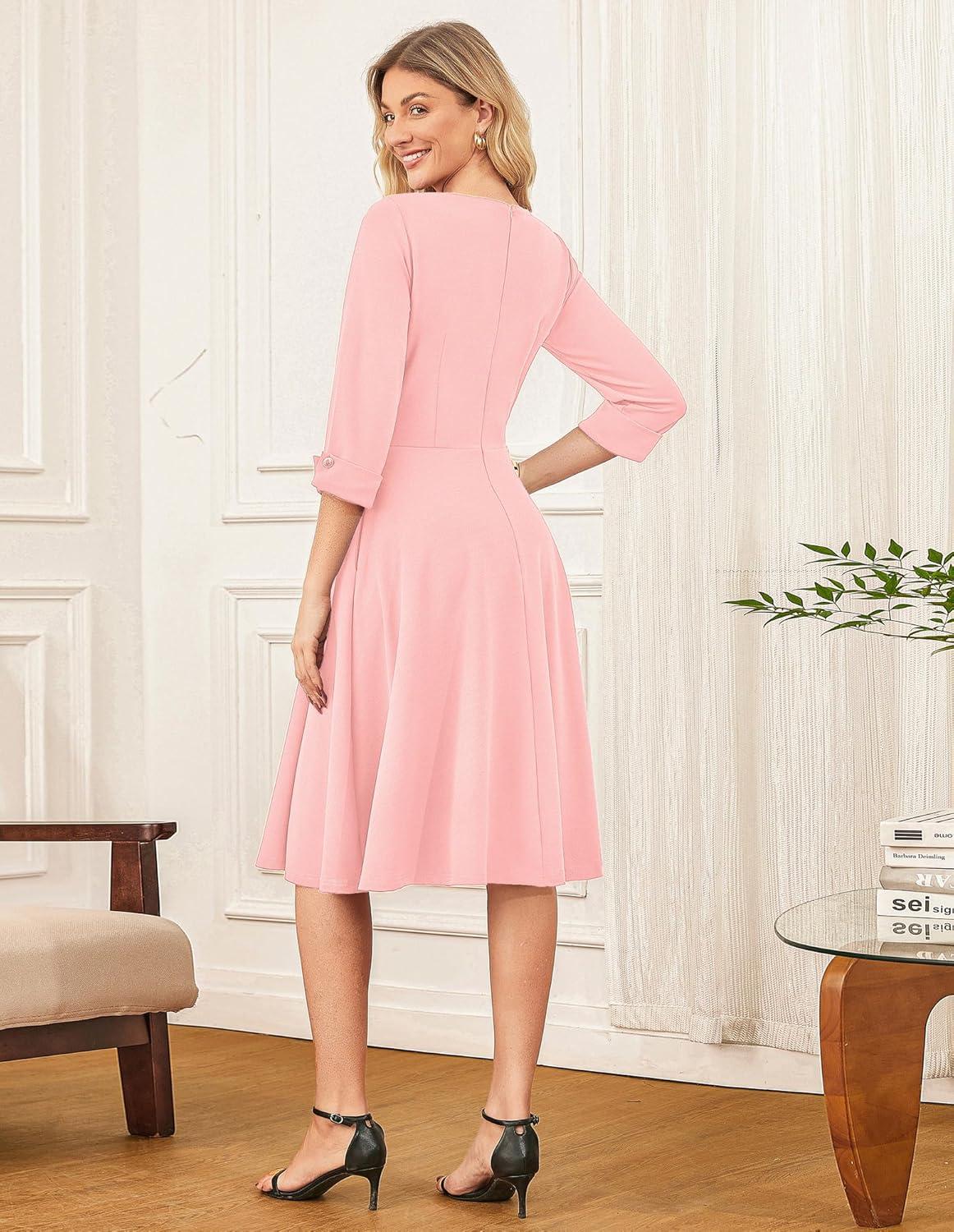 image:imageGRACE KARIN Work Dresses for Women 2026 34 Sleeve Fit and Flare Business Midi Dress Classy Office Dresses with PocketsLight Pink