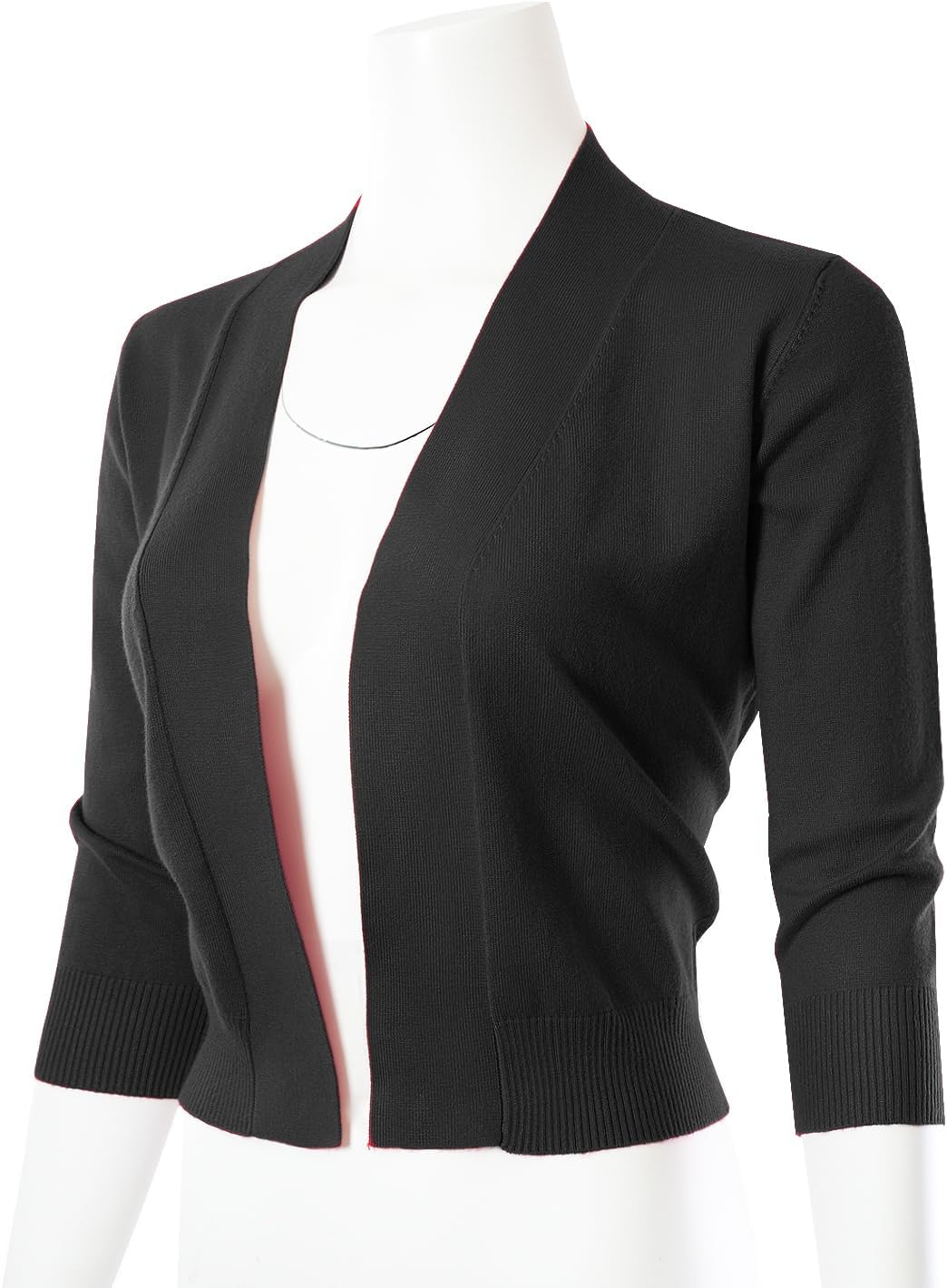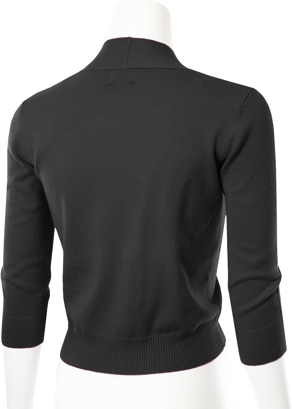 MAYSIX APPAREL 3/4 Sleeve Solid Open Bolero Cropped Cardigan for Women (S-3XL)(Msg1-black)