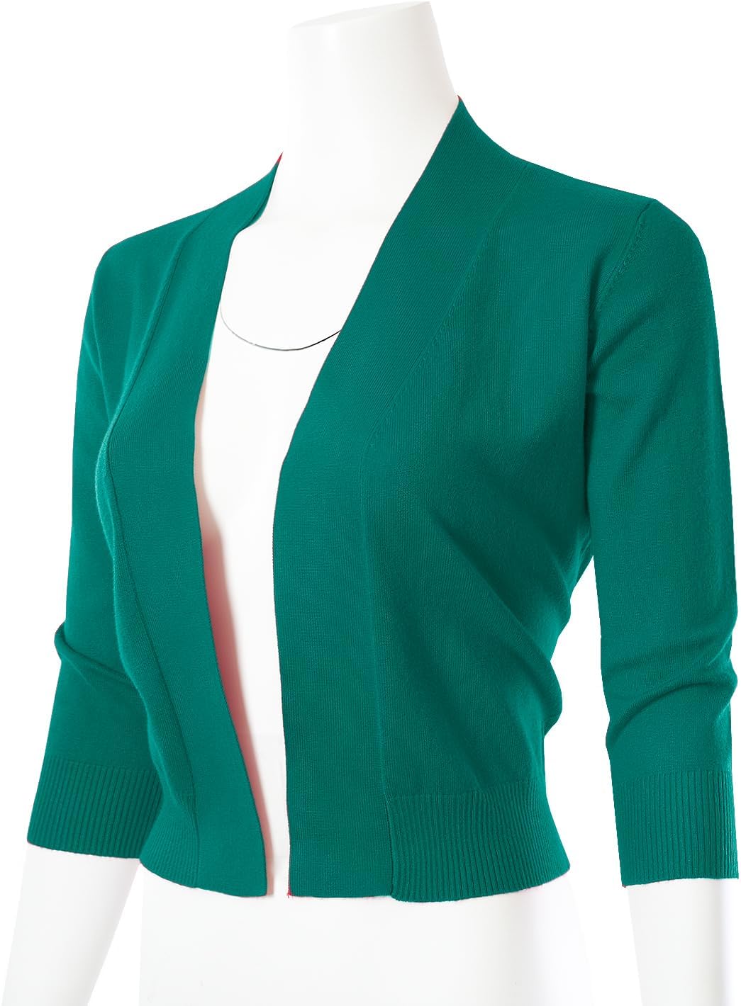 MAYSIX APPAREL 3/4 Sleeve Solid Open Bolero Cropped Cardigan for Women (S-3XL)(Msg1-darkgreen)