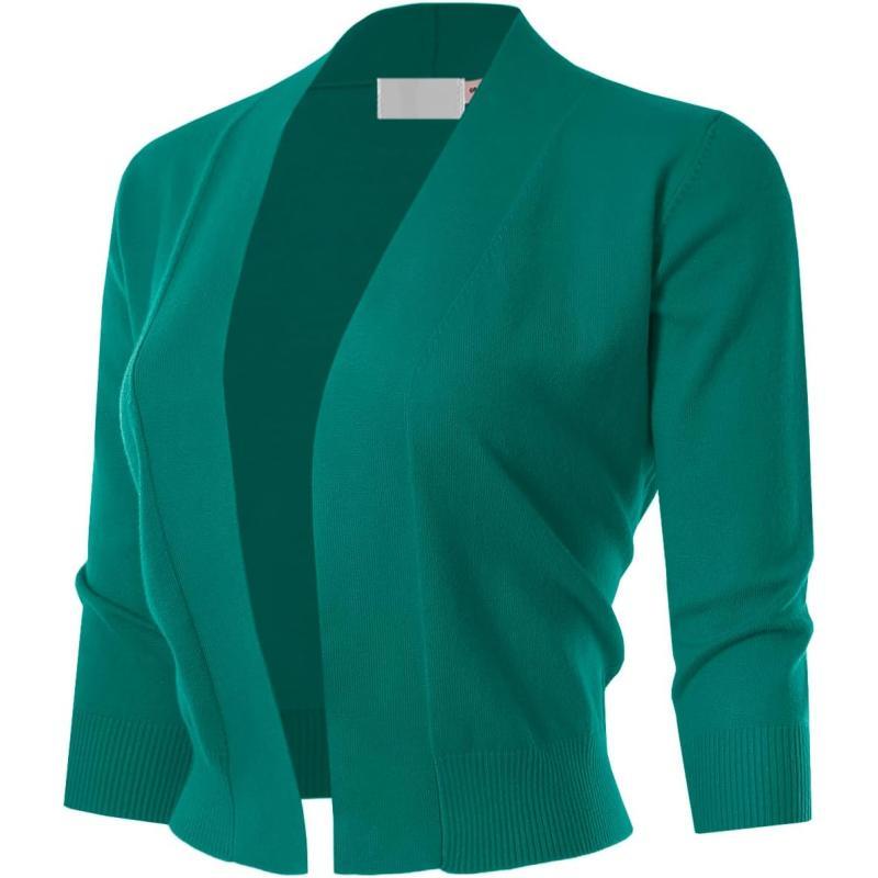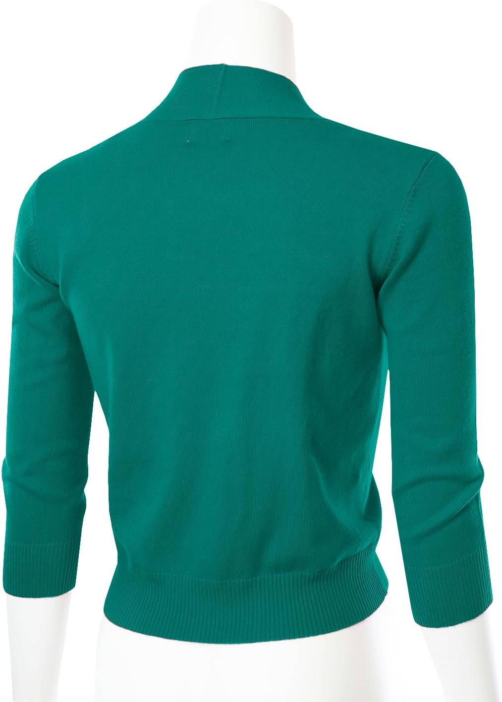 MAYSIX APPAREL 3/4 Sleeve Solid Open Bolero Cropped Cardigan for Women (S-3XL)(Msg1-teal)