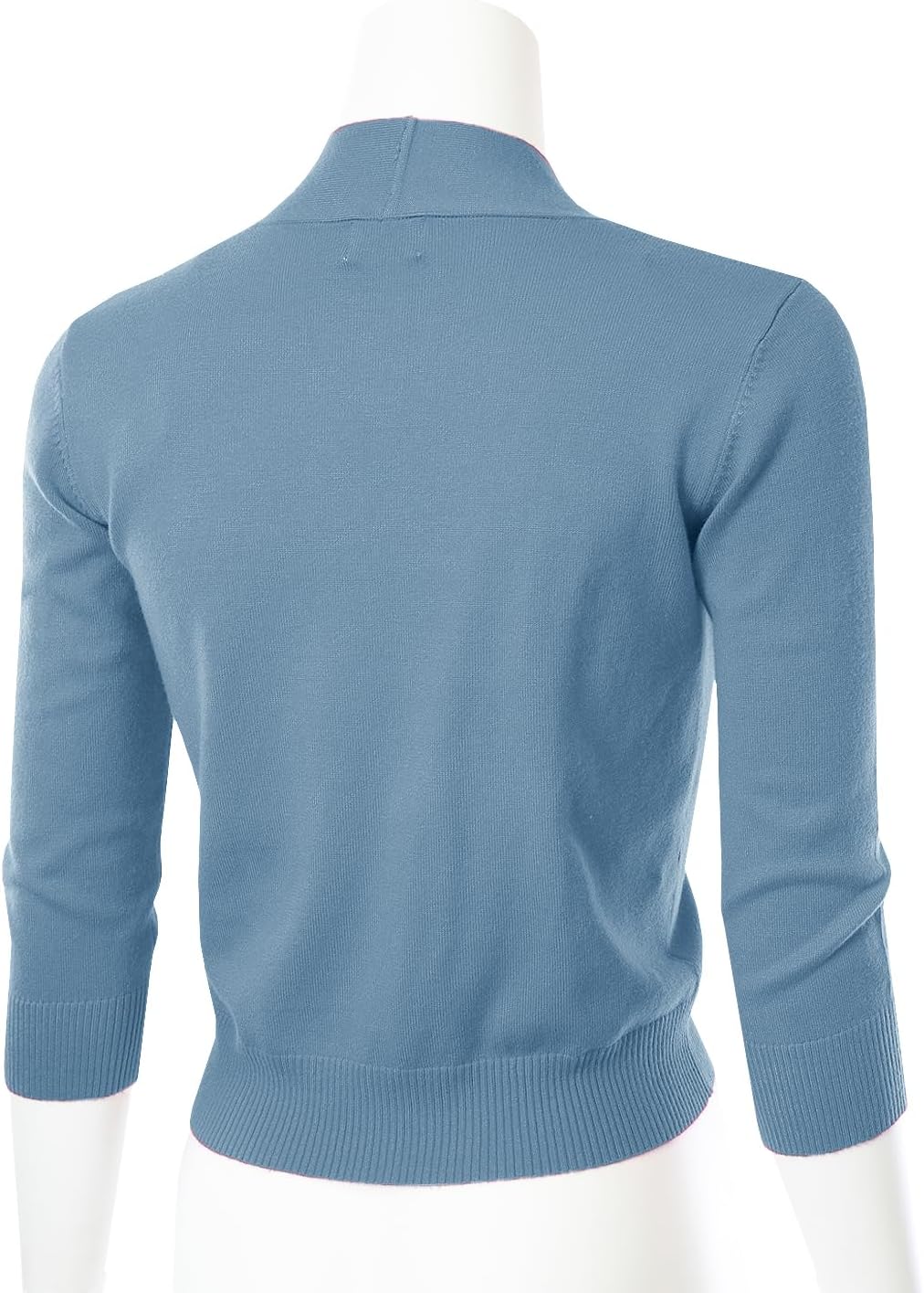 MAYSIX APPAREL 34 Sleeve Solid Open Bolero Cropped Cardigan for Women S3XLMsg1heatherblue