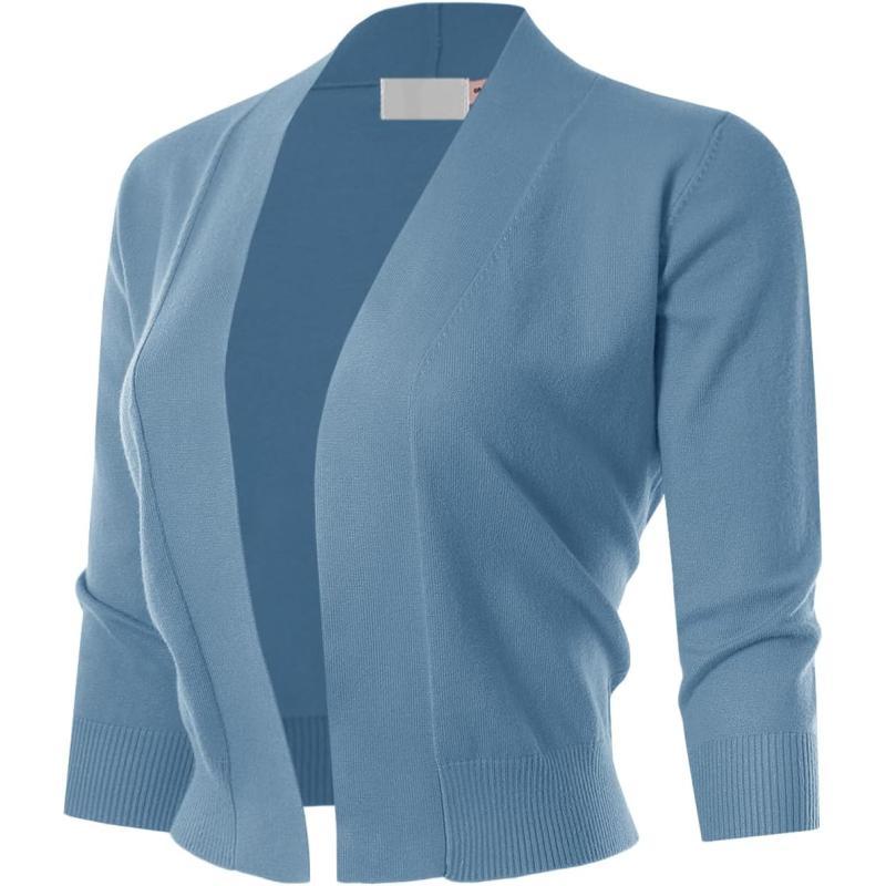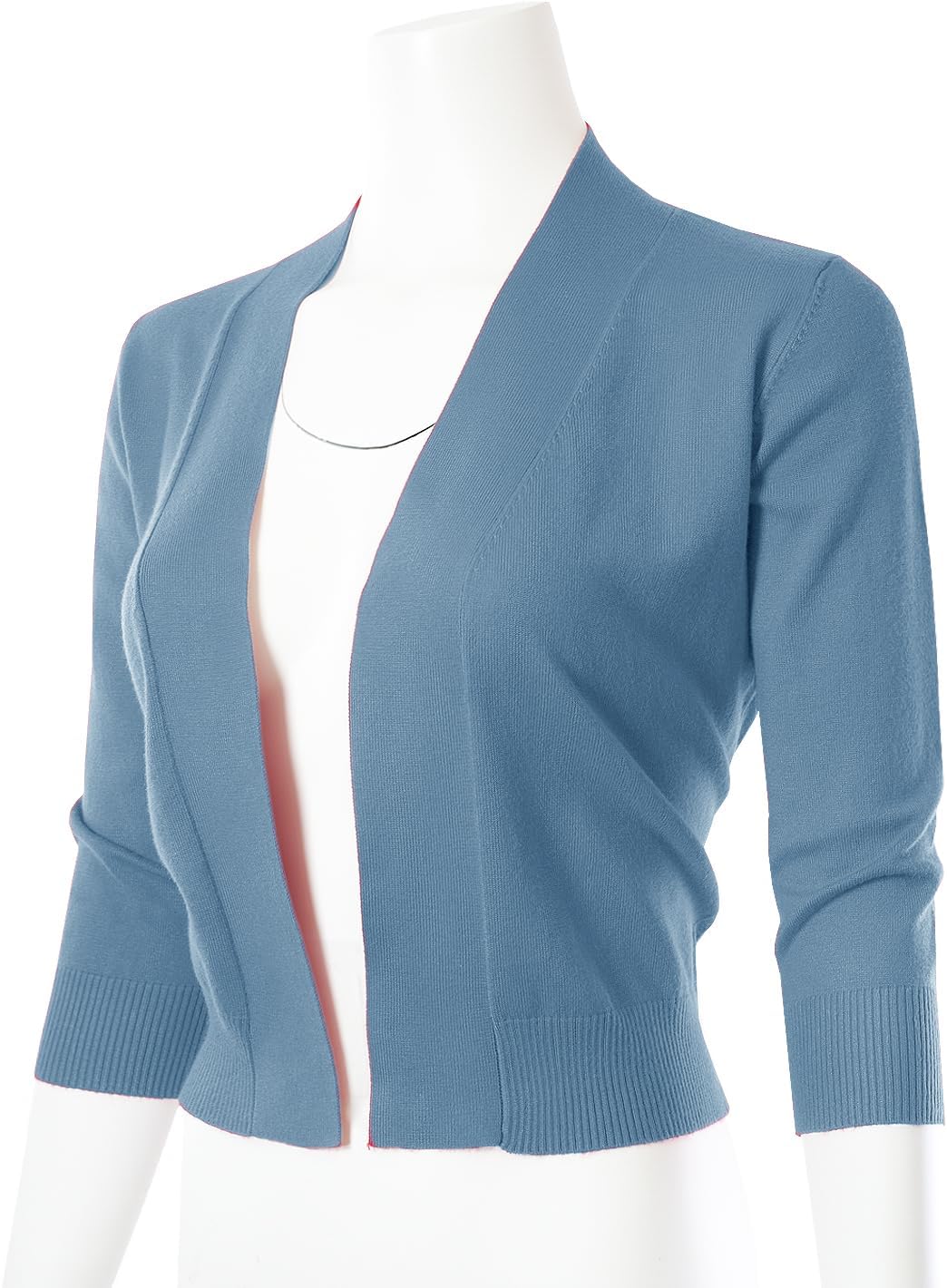 MAYSIX APPAREL 3/4 Sleeve Solid Open Bolero Cropped Cardigan for Women (S-3XL)(Msg1-heatherblue)
