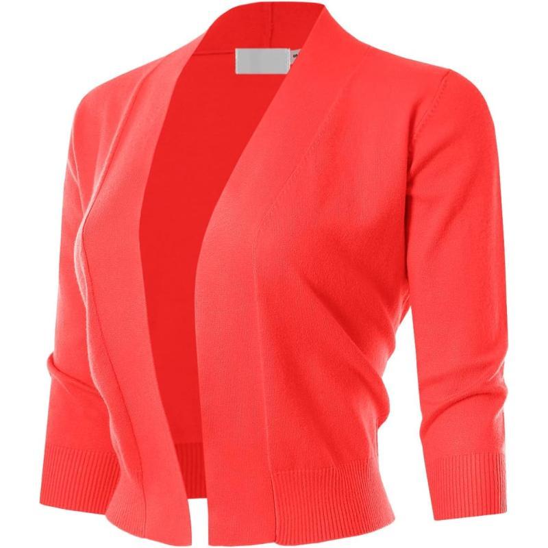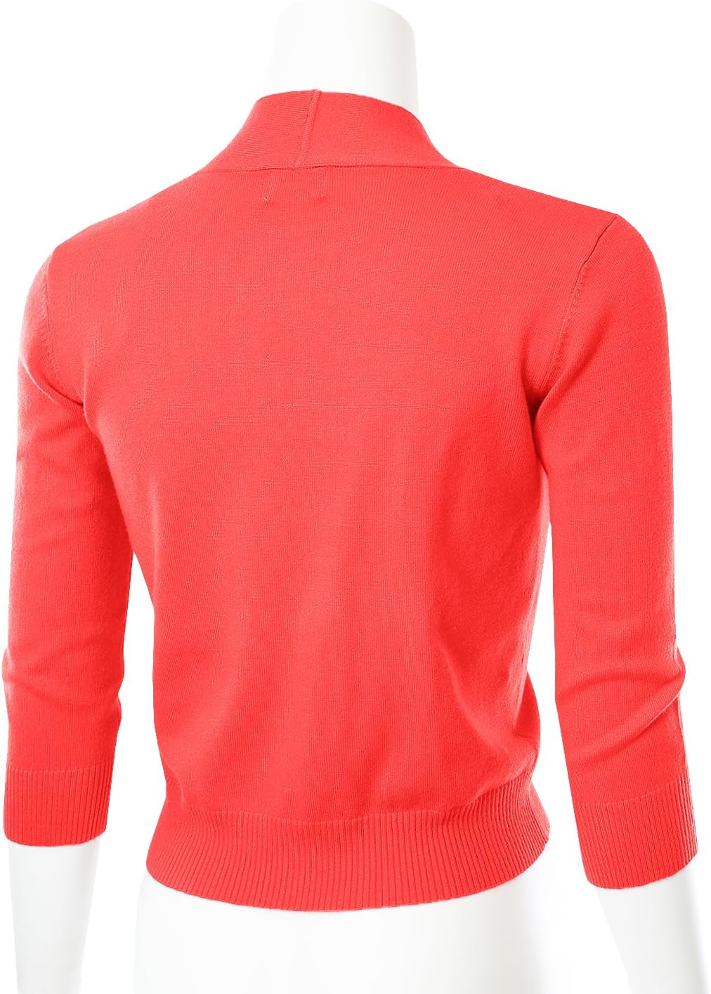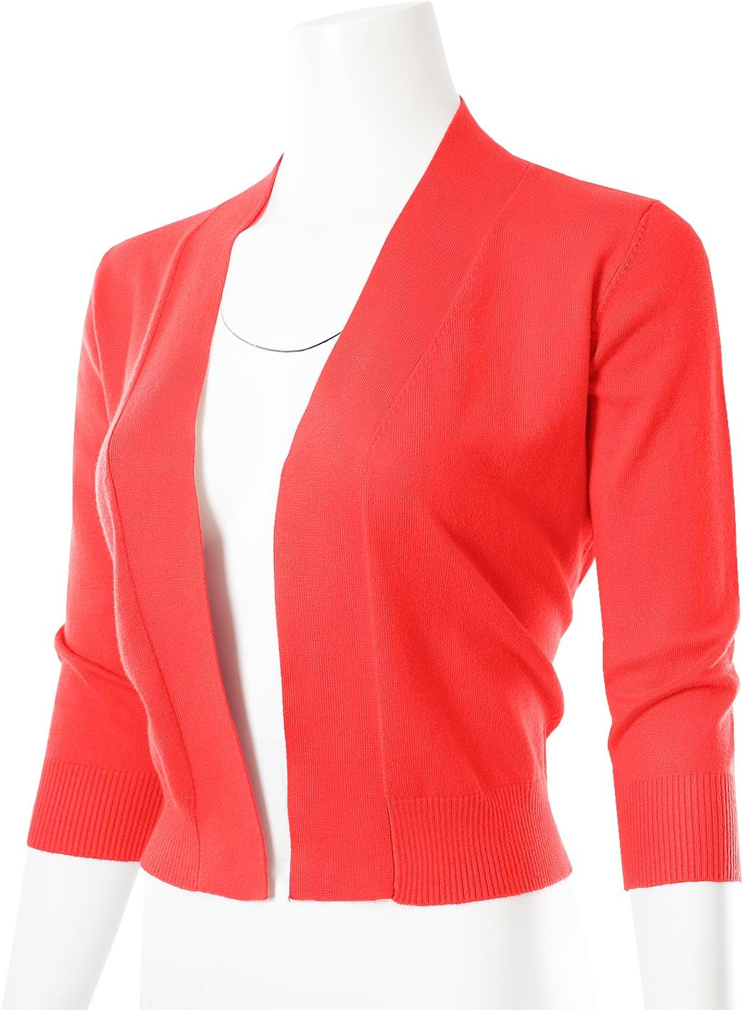 MAYSIX APPAREL 3/4 Sleeve Solid Open Bolero Cropped Cardigan for Women (S-3XL)(Msg1-hotcoral)