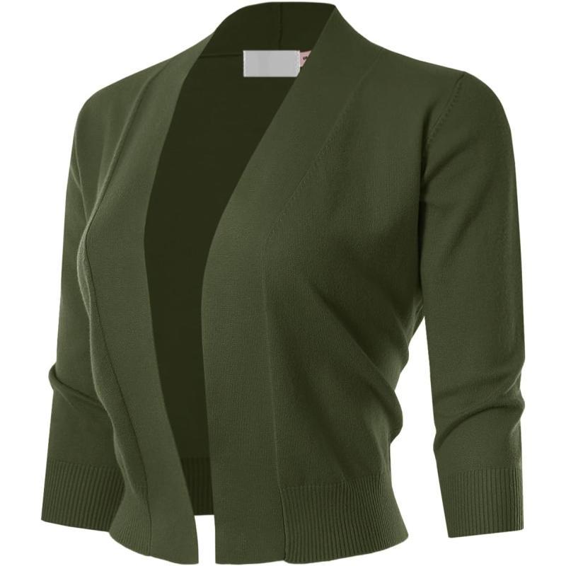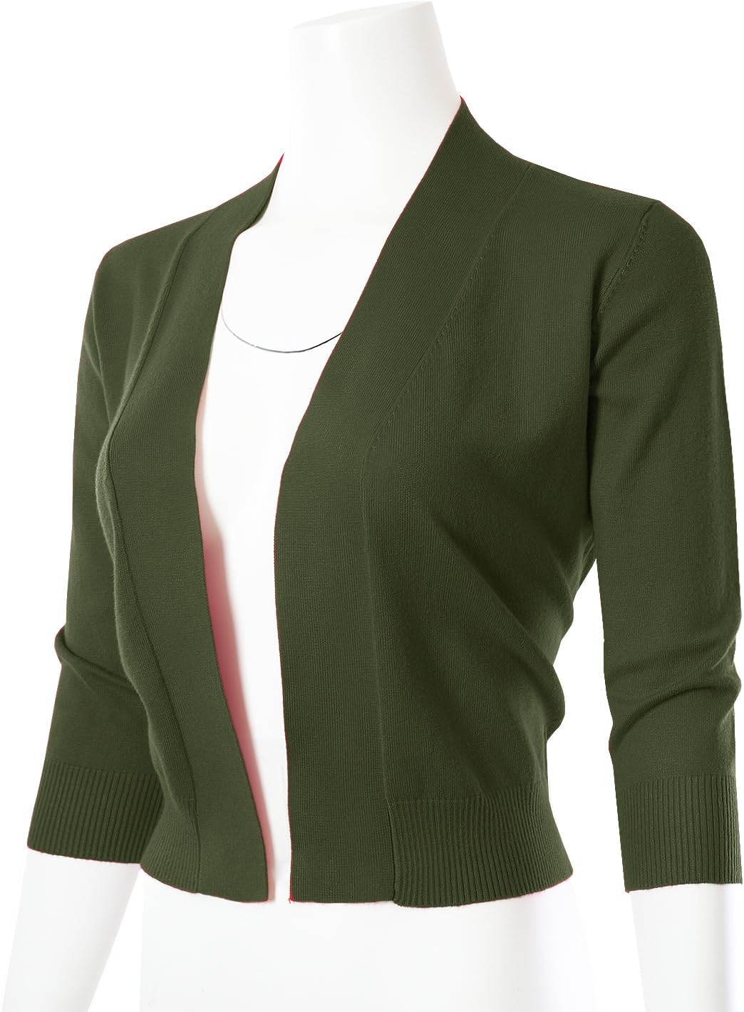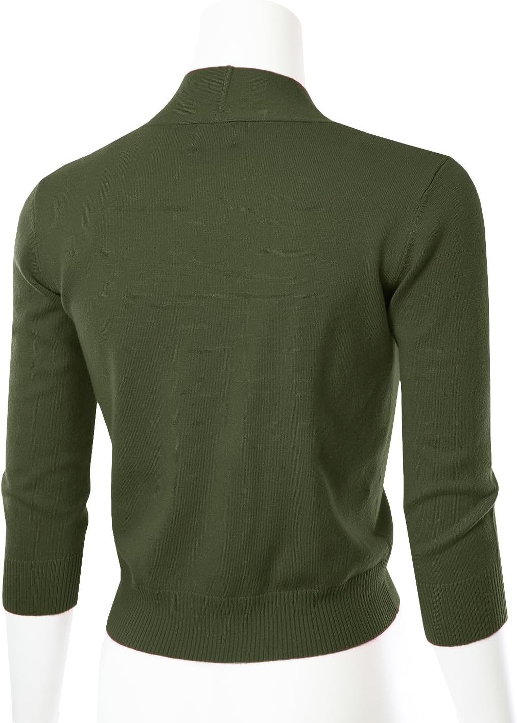 MAYSIX APPAREL 3/4 Sleeve Solid Open Bolero Cropped Cardigan for Women (S-3XL)(Msg1-olive)