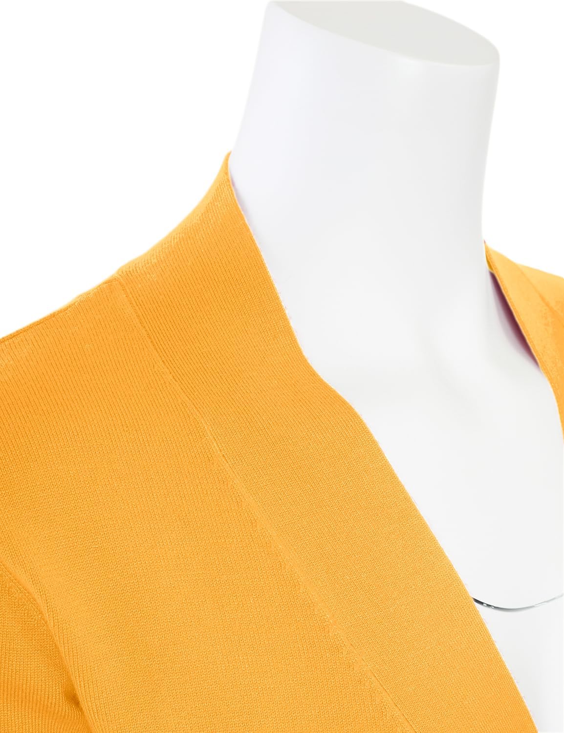 Classic three quarter sleeve open-front cardigan with ribbed streamline with a super comfortable fit. Perfect to complement any outfit or dress, with an easy to match enhanced summer/spring color variety.