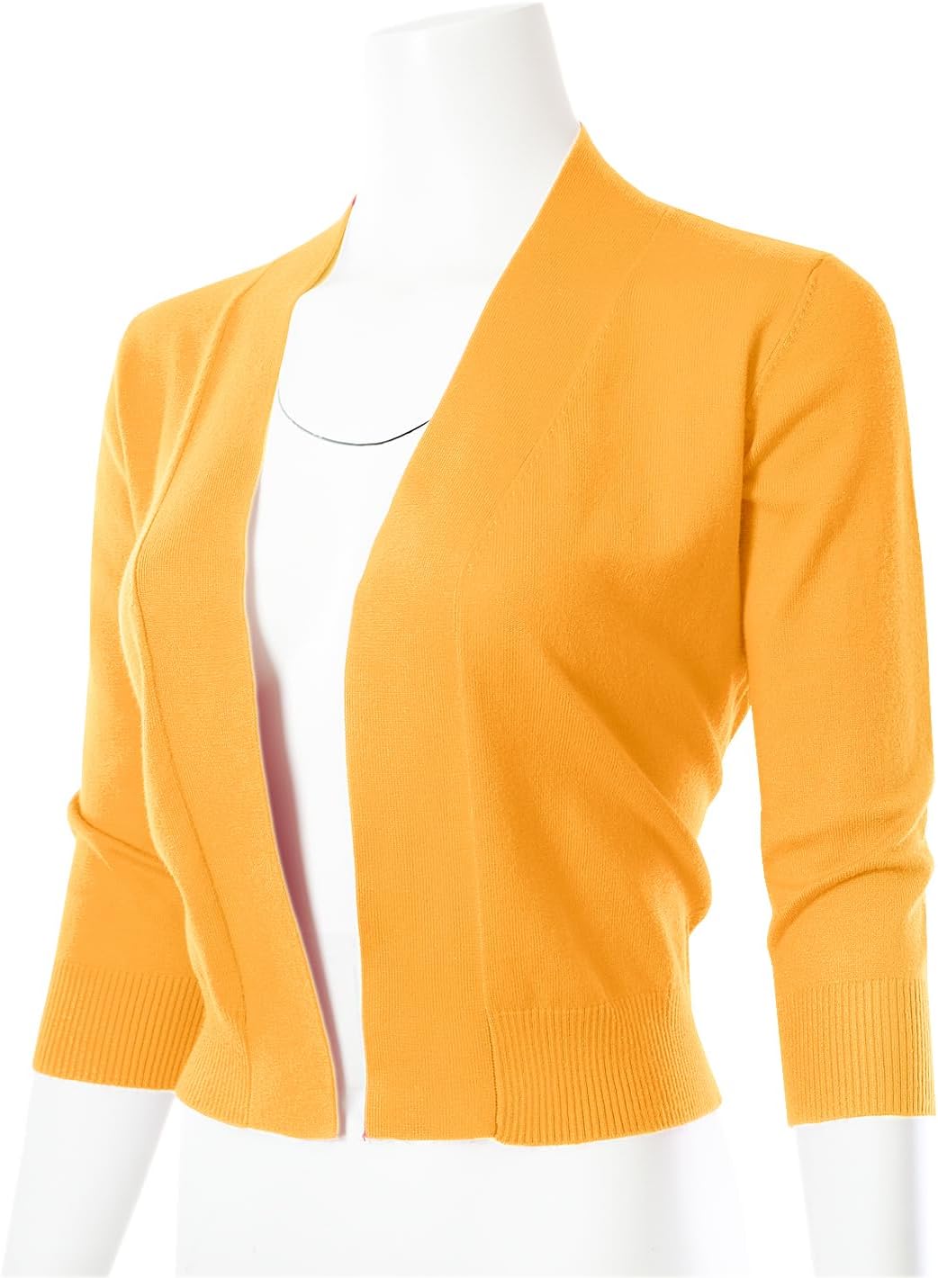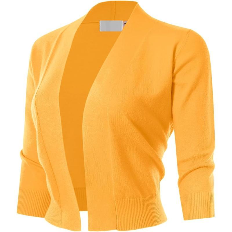 MAYSIX APPAREL 3/4 Sleeve Solid Open Bolero Cropped Cardigan for Women (S-3XL)(Msg1-yellow3)